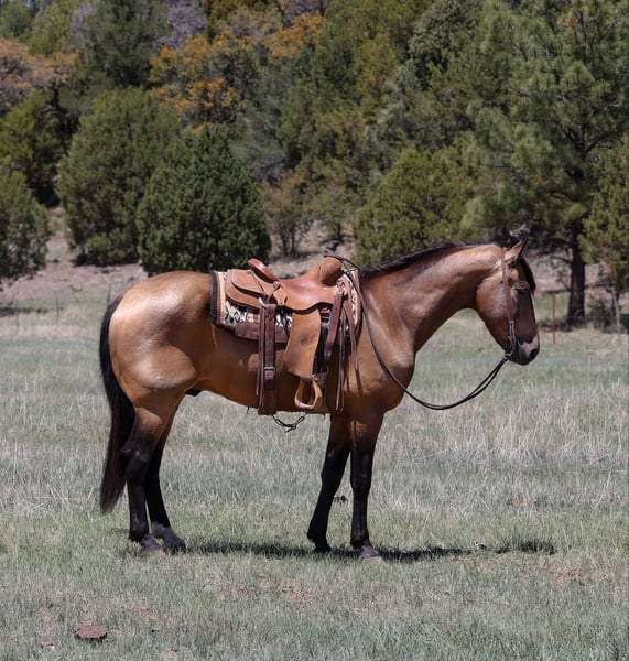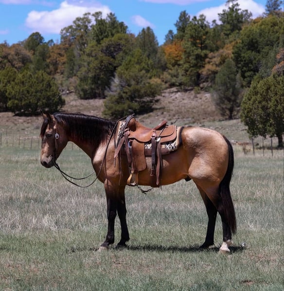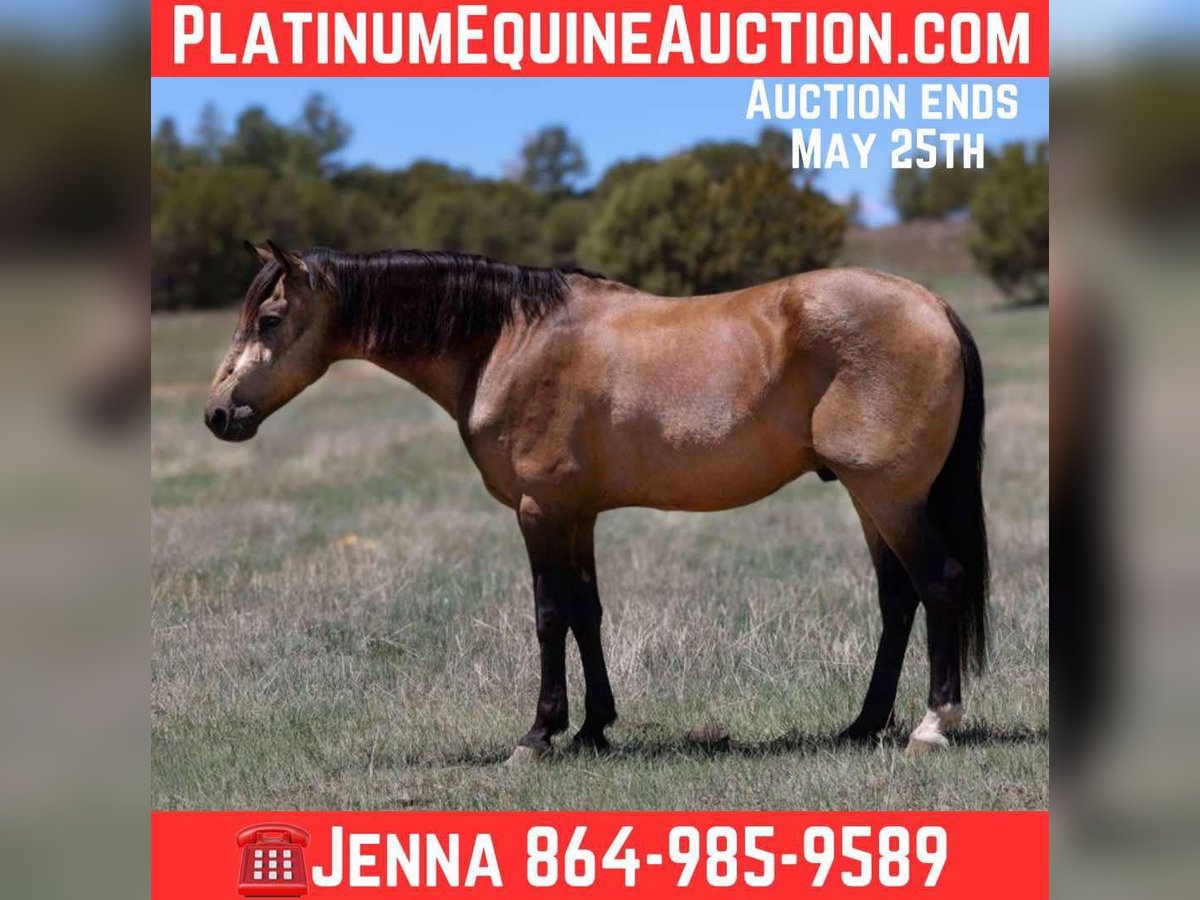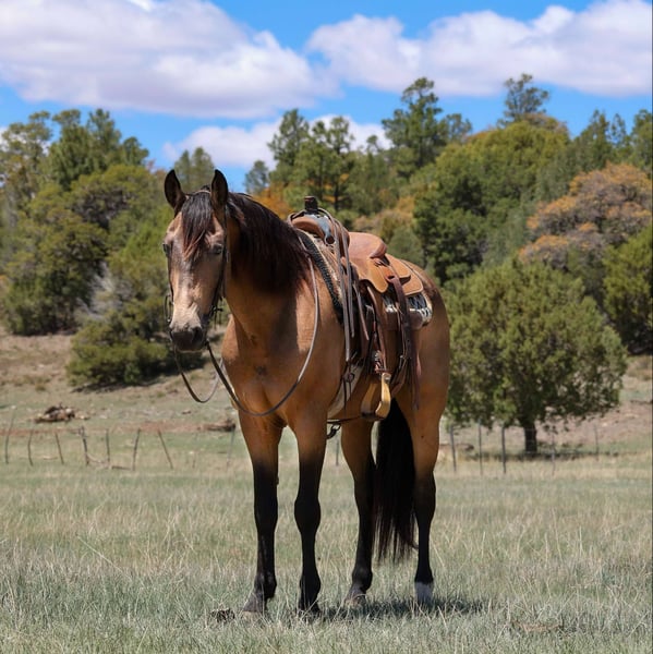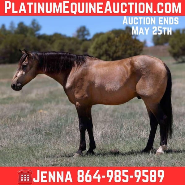 ONLINE AUCTION Place your bids at www.PlatinumEquineAuction.com Starting Bid $3500 Auction ends May 25th, 2025 Need a new saddle? Check out White Rock Saddles on our website or Facebook! Clyde is a 12 year old grade buckskin gelding standing 15.2hh. This Cadillac of a gelding has been there, done that! Whether it is countless hours on trails, pack trips, overnight hunting trips, leisurely trail rides, intense ranching, or even just arena work, Clyde is the guy to get it done. He has been used as a kids ranch horse, competing in ranch rodeos, 4H shows and gymkhanas while also still focusing on a lot of English lessons. This once in a lifetime gelding can get you through whatever you send his way. Clyde loves a good stroll through town, a hard days work, or even just a day to enjoy with you. He is as sweet and gentle as they come. He stands perfectly for baths, tacking, grooming, bridling, shoeing & trailering. He is a perfect fit for any age or level rider! Clyde will also come with a clean health and coggins! Call Jenna Edwards 864-985-9589 with any questions. Transport can easily be arranged anywhere in the U.S. from Cottonwood, AZ. ONLINE AUCTION Place your bids at www.PlatinumEquineAuction.com Starting Bid $3500 Auction ends May 25th, 2025 Need a new saddle? Check out White Rock Saddles on our website or Facebook!