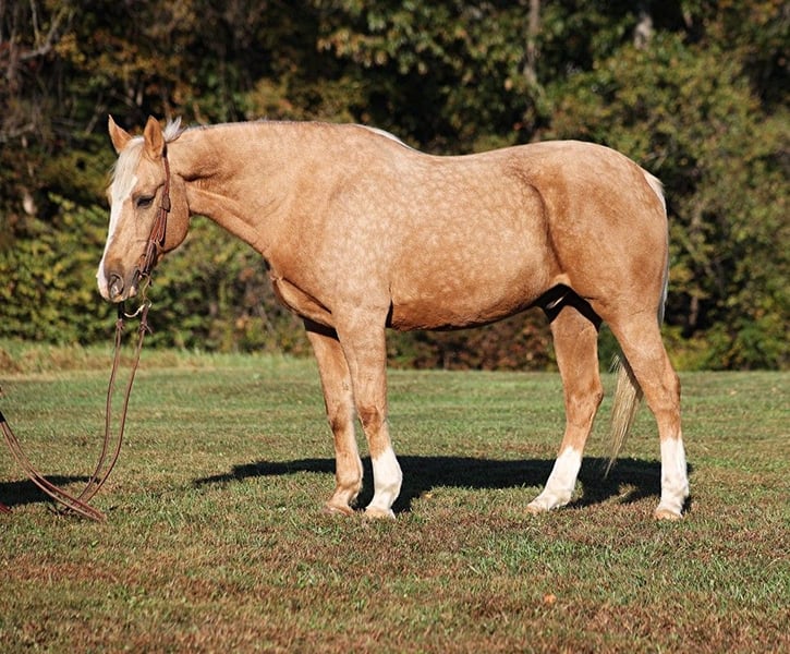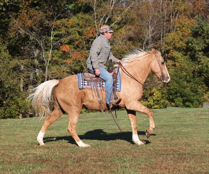 ONLINE AUCTION Place your bids at www.PlatinumEquineAuction.com Starting Bid $3500 Auction ends November 3rd, 2024 Need a new saddle? Check out White Rock Saddles on our website or Facebook! If Barbie has a dream horse this would be him! Able is a well built gelding standing around 15.3hh, he is an 11 year old, dark dappled palomino with white socks. We got Able from the family who raised him. He has been trail ridden in multiple states. He will cross creeks, ditches, logs and navigate rough rocky areas. He is safe riding in traffic. Able has been ridden by older folks and kids as well, just cruising along slow and easy down the trails is his prefered speed. We have used him around the ranch to check cows and sort some on him as well. He is a confident horse on the trails and will lead the crew, head out alone with no issues! He has been exposed to all kinds of wildlife such as deer or turkey or other animals like cows or dogs and will go anywhere that he is asked too. He has been rode many miles in the mountains of Eastern Kentucky and encountered every obstacle possible on the trail. He will go up or down even the steepest slopes, across deep creeks, over downed trees, and over all types of rough terrain while still being sure footed. Able is not cinchy, cold backed, does not crib or weave. Here is one horse that will get you noticed anywhere that you go!!! Feel free to call Lucky 13 Equine Lysandra 765-717-2041 with any questions or to make a buy it now offer. Located in Brodhead, KY. ONLINE AUCTION Place your bids at www.PlatinumEquineAuction.com Starting Bid $3500 Auction ends November 3rd, 2024 Need a new saddle? Check out White Rock Saddles on our website or Facebook!