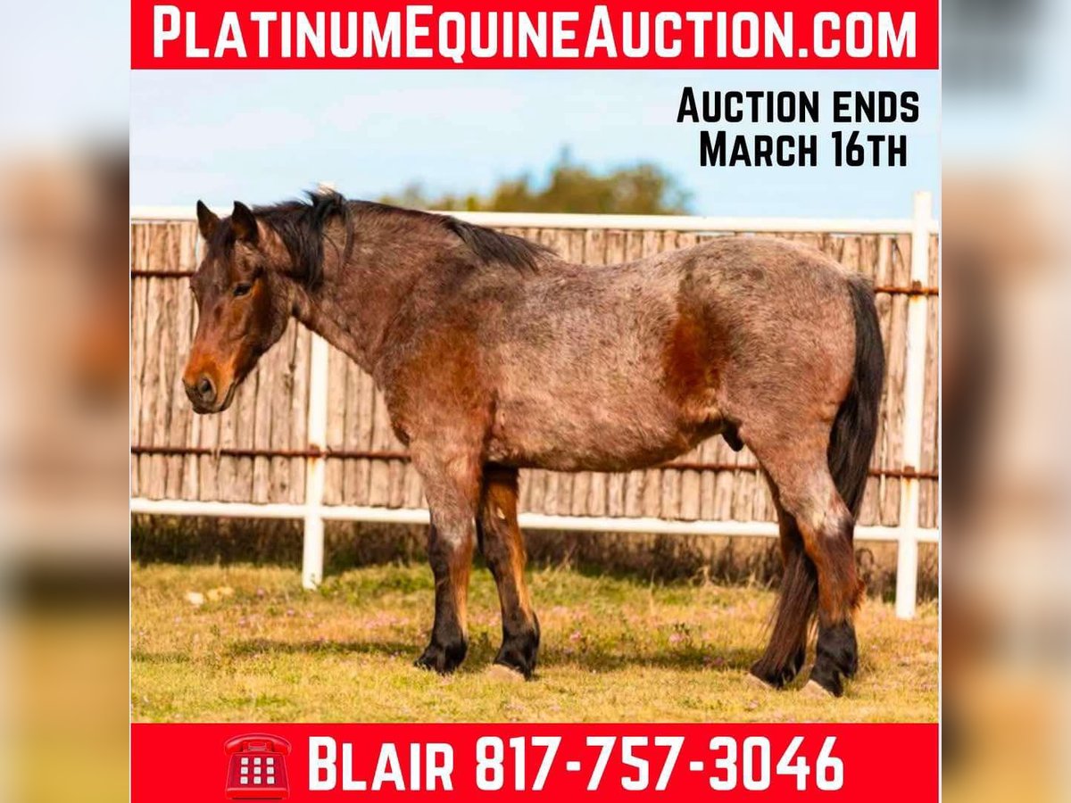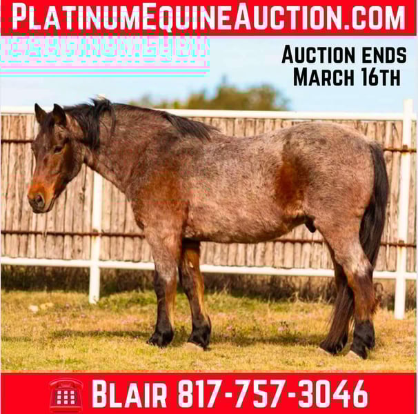 ONLINE AUCTION Place your bids at www.PlatinumEquineAuction.com Starting Bid $3500 Auction ends March 16th, 2025 Need a new saddle? Check out White Rock Saddles on our website or Facebook! Who doesn’t love a chunky draft cross gelding named A1? This handsome bay roan stands at a STOUT 14.3 and is 12 yrs old! A1 is a total teddy bear. He spent the majority of his life as a dude horse up on a ranch in South Dakota and now he’s ready for his own family! He is extremely gentle and not your typically watchy ranch horse. He’s seen hundreds if not thousands of miles of trails, been rode by countless different people and has been around cattle! A1 rides good, goes the speed you ask and has a great stop! He’ll neck rein and direct rein, move off leg and pick up both leads with ease. He has zero buck, bolt, rear and is not spooky! He stands dead quite at the tie rail is the perfect one for the whole family to love on and enjoy. A1 would be the perfect addition to anyone looking for a family horse, trail horse or lesson horse! He would be a great fit for someone looking for an easy one to pleasure ride that was safe for the whole family! He loads, leads, bathes and ties great. He is very easy to get a long with and has a very relaxed personality! Someone is going to get a super unique, GORGEOUS ride! A1 is surely special! More pics and videos on his website page at northtexashorsecompany.com/a1. Please call Blair with North Texas Horse Company for more info at 817-757-3046. We are located in Weatherford, TX and can help arrange affordable shipping to anyone!! ONLINE AUCTION Place your bids at www.PlatinumEquineAuction.com Starting Bid $3500 Auction ends March 16th, 2025 Need a new saddle? Check out White Rock Saddles on our website or Facebook!