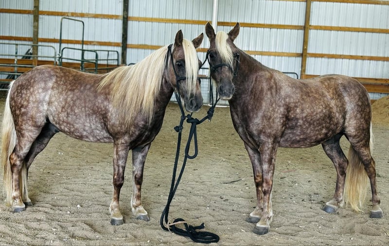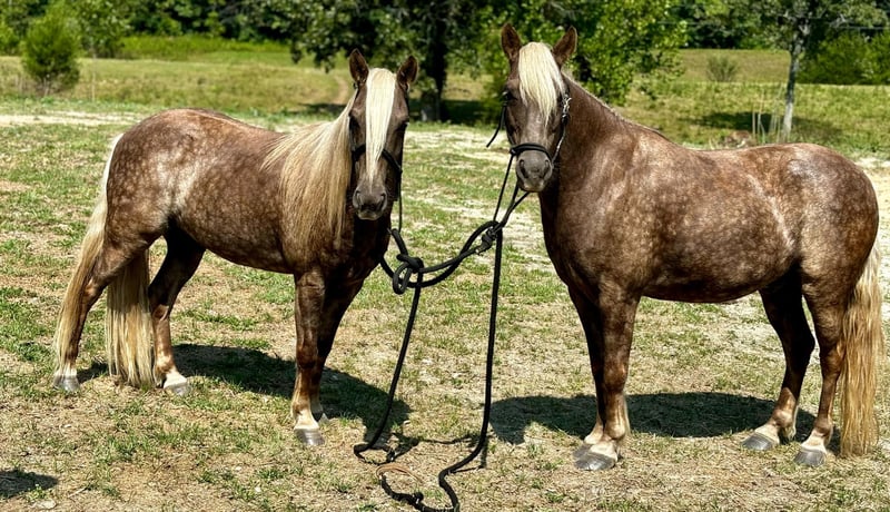 ONLINE AUCTION Place your bids at www.PlatinumEquineAuction.com Starting Bid $3500 Auction ends September 8th, 2024 Need a new saddle? Check out White Rock Saddles on our website or Facebook! You are bidding on the PAIR, 1 bid is buying BOTH ponies!!! Meet BROOKS AND DUNN… You know the Luke combs saying “somethings just go better together, and probably always will” well let me introduce the dynamic duo, the peanut to the butter, the best to friend… brooks and Dunn these boys are 11and 12 years young, they stand 11 & 12 Hands. They may be small, but we guarantee them to ride as good if not better than daddy’s ole reliable ranch gelding. Brooks is the bigger guy of the duo, he’s got more hair than Kim Kardashian after leaving the hair salon. Hes thick made and got dapples bigger than apples, hes got good solid feet, he will stand to be tacked, mounted, bridled, he will walk, jog and lope circles on the correct lead, he rides out alone, or with his best friend Dunn, goes anywhere you point him, there’s no hill to steep or water to deep. They have been taken through the 4-H gaming events, and also drive single or double. He stays broke with time off, brooks is more of the couch potato of the bunch, he enjoys lots of pets and watching Dunn be the over achiever, although we’ve ridden them western, these boys also will jump a course with ease and no refusal and have dabbled in the English world just as much. Now, let’s skip over to Dunn, he does everything brooks does, he’s got that same sweet personality, loads of athleticism, and really is an overachiever, if you ask him to jump, well he’s gonna ask how high, he never refuses whatever task is asked of him, I believe these boys main goal in life is to eat lots of cookies, please their humans and pester one another in the pasture ! The boys will jump on any trailer, they stand to get their feet done, they stall well, they can be together, or ride off alone, although they are best friends they don’t get herd bound and truthfully enjoy their alone time away from one another ! If you’re wanting the perfect pair of ponys, these boys are sure to check every box ! For more information call JK Ponies Justyce 606-748-0066 Kati 606-407-5747. ONLINE AUCTION Place your bids at www.PlatinumEquineAuction.com Starting Bid $3500 Auction ends September 8th, 2024 Need a new saddle? Check out White Rock Saddles on our website or Facebook!