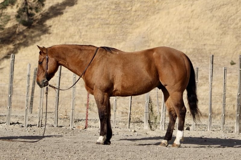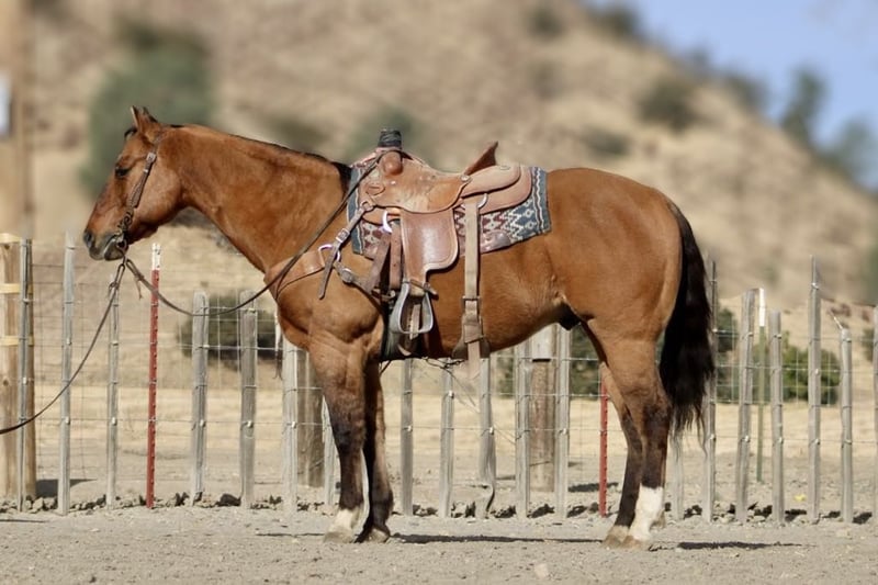 ONLINE AUCTION Place your bids at www.PlatinumEquineAuction.com Starting Bid $3500 Auction ends December 8th, 2024 Need a new saddle? Check out White Rock Saddles on our website or Facebook! Dundee is your ultimate, safe, trustworthy companion!!! At just a 12 year-old, this dun gelding standing a solid 15 hands tall with his striking tiger-striped legs that add a unique flair to his already charming demeanor. If you’ve been searching for the most safe and trustworthy horse, look no further; this gentle beauty is as quiet as a mouse and perfect for even the tiniest, timid riders. Dundee is easygoing, making him not just reliable but also an absolute joy to be around. Whether you’re gathering cattle, branding at the ranch, or embarking on scenic trail rides he navigates any trail is use to all types of wildlife , trees and thick brush. Dundee excels in every task with gentleness and confidence. He navigates varied terrains effortlessly from crossing logs to wading through deep water taking each step with unmatched sure-footedness that instills trust in every rider. In the arena, he offers smooth transitions between a slow lope and trot alongside a comfortable walk that feels like riding silk. His responsiveness shines when it comes to stopping and neck reining just a gentle touch of the reins glides him into motion without hesitation. With experience tackling obstacles such as bridges, tarps, and even car washes all completed flawlessly: Dundee demonstrates resilience under pressure while remaining unfazed by roadside traffic or playful distractions from dogs or quads buzzing nearby. This friendly boy greets you eagerly at the gate and takes everything in stride: clipping, tacking up is a breeze. Loading into trailers or settling into stalls or roaming in the pasture makes no difference to him. Dundee would be a wonderful addition to a family or make a great lesson horse with his easy gentle demeanor he would instill great confidence in beginner riders and seasoned riders alike please come meet this handsome boy and fall in love! Contact Longhorn Ranch Dina 831-537-1915 Located in Paicines, CA. ONLINE AUCTION Place your bids at www.PlatinumEquineAuction.com Starting Bid $3500 Auction ends December 8th, 2024 Need a new saddle? Check out White Rock Saddles on our website or Facebook!