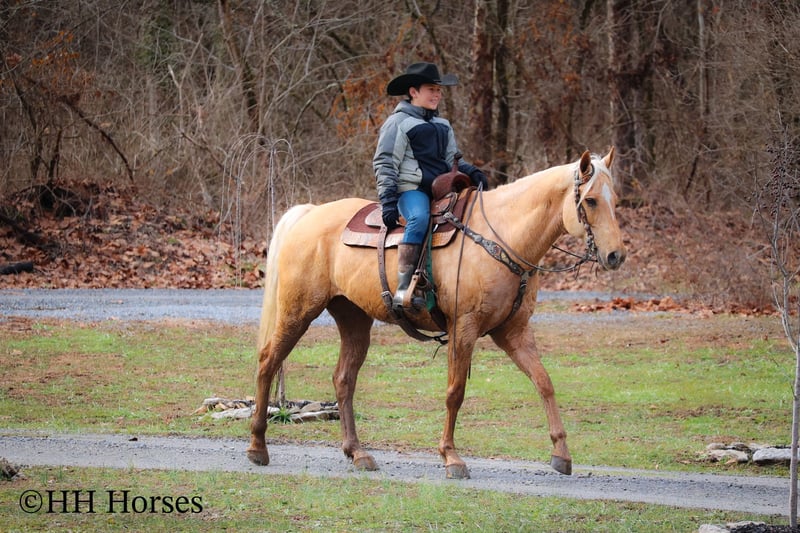 ONLINE AUCTION Place your bids at www.PlatinumEquineAuction.com Starting Bid $3500 Auction ends February 23rd, 2025 Need a new saddle? Check out White Rock Saddles on our website or Facebook! This is Mello Yello, a family friendly, quiet, and well broke 2012 registered AQHA PALOMINO GELDING that anyone can ride. He stands 16 hands tall and is well made. He has an attractive head and is a really nice mover. He is well bred and a grandson of “FRENCHMANS BOGIE” and he also has FIRST DOWN DASH on his papers. He has done ranch pleasure and will ride English or Western. He has been used around cattle in the pastures. He is quiet natured, trail rides for novice riders, and is cautious and patient. He has been ridden by youth and beginner riders. He is brave to go through water and will also ride in snow, ice, and mud. He will lope nice collected circles on the correct lead, slide stop, and back up. He moves off of leg cues and has a nice one hand neck rein. He is low headed and calm. He stands to tack, mount, groom, and handle. He gets along well with other horses and rides quietly in a group or out alone. He is not spooky and he will not go any faster than what is asked of him. He is naturally slow legged and he is more whoa than go. Excellent horse for any level rider to enjoy. Located in Flemingsburg, KY. For more info or to make a BUY IT NOW offer contact HH Horses Erin 304-238-4155. ONLINE AUCTION Place your bids at www.PlatinumEquineAuction.com Starting Bid $3500 Auction ends February 23rd, 2025 Need a new saddle? Check out White Rock Saddles on our website or Facebook!
