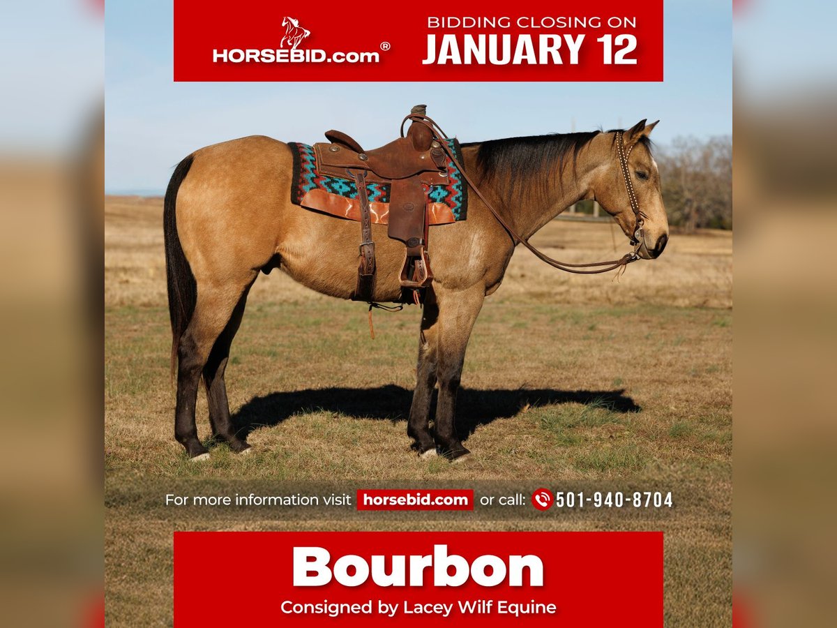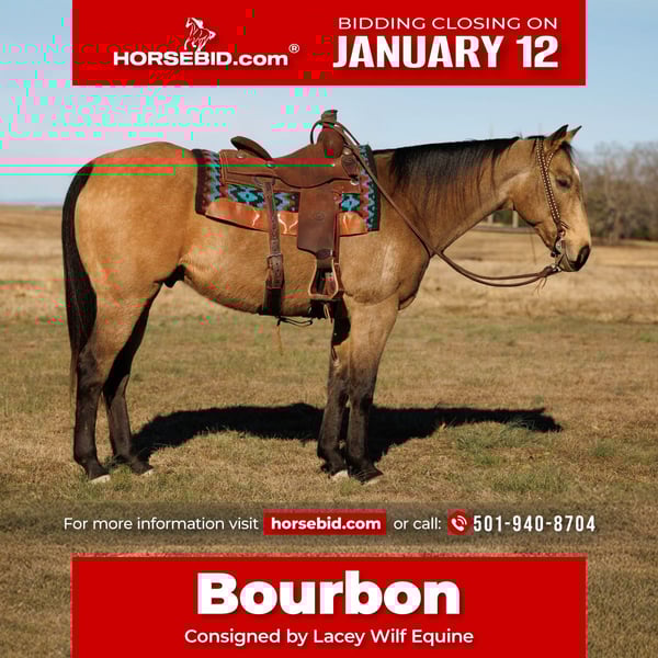 ♦️𝐍𝐄𝐖 𝐘𝐄𝐀𝐑'𝐒 𝑬𝒙𝒕𝒓𝒂𝒗𝒂𝒈𝒂𝒏𝒛𝒂♦️ Happening now thru MONDAY | JANUARY 12th - Available EXCLUSIVELY on HorseBid's website! For more details and to register visit: www.Horsebid.com CONSIGNOR CONTACT: Lacey Wilf Equine 501-940-8704 LOCATION: Quitman, AR BREED: Quarter Horse REGISTERED: No REGISTERED NAME: Bourbon COLOR: Buckskin HEIGHT: 15.3 AGE: 15 GENDER: Gelding Bourbon is a 15.3 hand, 15-year-old gelding that brings proven all-around versatility, consistency, and a brain you can trust. He’s a seasoned barrel and pole horse with a confident, finished style—knows his job, stays honest through his patterns, and doesn’t need to be babysat. He’s the kind that lets a rider focus on riding and competing instead of managing attitude, which makes him an excellent fit for junior rodeos or a youth rider ready to step up with something dependable and proven. Outside the arena, Bourbon is just as valuable. He’s an excellent trail partner, confidently crossing water, bridges, ditches, brush, uneven ground, and varied terrain without hesitation. He’s comfortable being used, hauled, and ridden in new environments, taking everything in stride. He’s also been hauled to the stockyards, where he’s been used for penning, sorting, and loading cattle, giving him real-world experience that shows in his calm demeanor and steady responsiveness in busy, high-pressure settings. One of Bourbon’s standout qualities is his reliability with time off—give him a few days or even longer, and he comes back the same: quiet, broke, and ready to go right back to work. On the ground, he’s a true gentleman with excellent manners and a genuinely personable nature. Easy to handle, enjoyable to be around, and straightforward in every sense, Bourbon is the kind of horse that’s hard to replace—an honest, all-around gelding that’s just as enjoyable in day-to-day use as he is dependable when it counts.