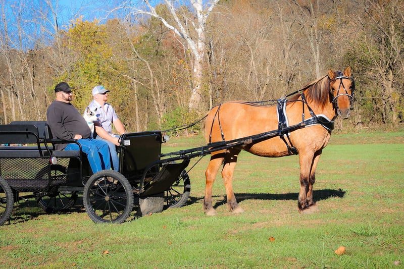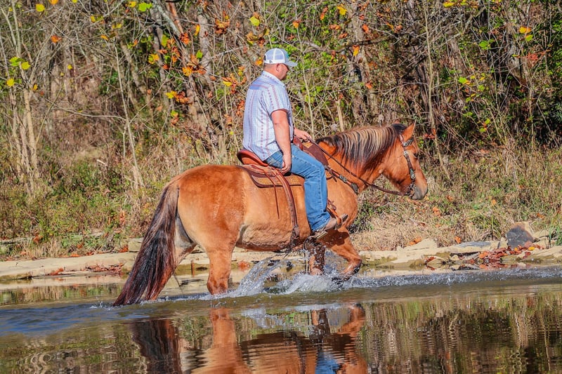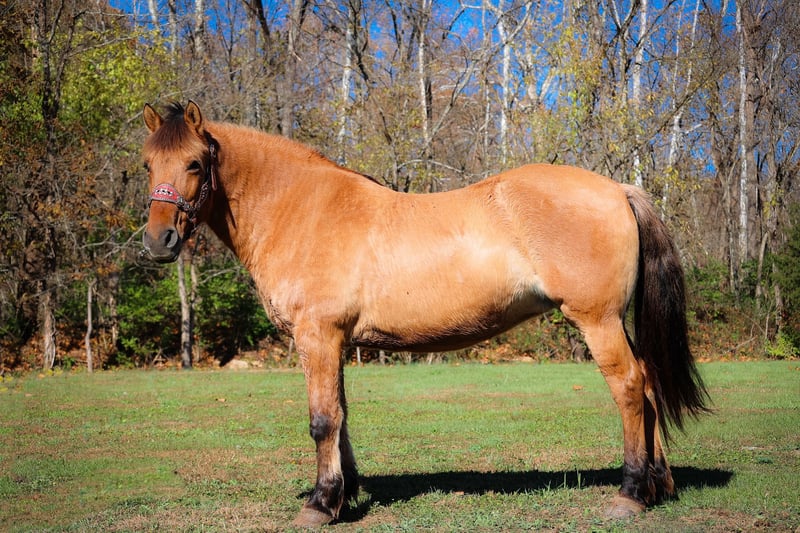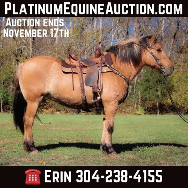 ONLINE AUCTION Place your bids at www.PlatinumEquineAuction.com Starting Bid $3500 Auction ends November 17th, 2024 Need a new saddle? Check out White Rock Saddles on our website or Facebook! This is “CHICKEN KABOB”, an extraordinarily gentle, quiet, and safe NORWEGIAN FJORD QUARTER HORSE CROSS MARE that is broke to ride and drive. This mare is family and youth friendly. She has been driven, ridden, and handled by novice equestrians and timid riders and drivers. She is quiet and will not go any faster than you ask of her. She stops with ease and stands patiently until asked to move out. She has been on weekend wagon trains, she has been in parades, and hooked to all farm machinery. She will plow the garden, haul the manure, and win blue ribbons in the hitch classes. She is very quiet to ride and will cross water and all other trail obstacles quietly. She rides out alone, is good to lead or follow in a group, and will go anywhere you ask her willingly. She is kind, patient, honest, and true every time you get her out. She stands quietly to be harnessed, hitched, mounted, tacked, and groomed. Excellent family horse the whole tribe can enjoy, whether you love riding or driving, you will appreciate her confident relaxed demeanor and her friendly personality. This mare is truly the hard to find kind. She is the right size, has the right temperament, the training, the ability, and the mind to make her new owners proud. She is 14 years old and stands an attractive and muscular 14.3 hands tall. For more info call HH Horses Erin 304-238-4155 Located in Flemingsburg, KY. ONLINE AUCTION Place your bids at www.PlatinumEquineAuction.com Starting Bid $3500 Auction ends November 17th, 2024 Need a new saddle? Check out White Rock Saddles on our website or Facebook!