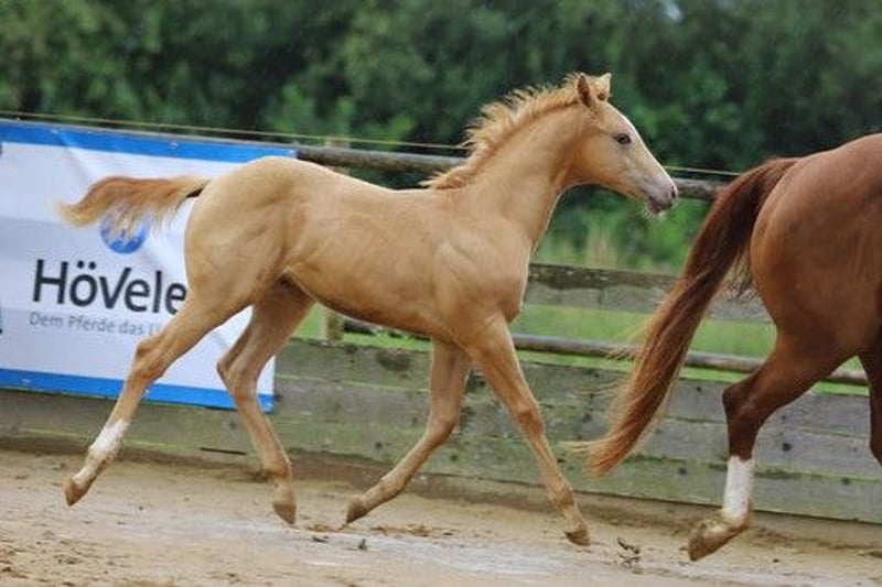 Triple Fire Boy - ein bildschöner Quarter Horse Wallach in der außergewöhnlichen Farbe Golden Champagne, geboren am 21.04.2025. Mit einem geschätzten Endmaß von ca. 150-155 cm, seinem kompakten, korrekt gebauten Körper und der tollen Bemuskelung ist er ein echter Hingucker mit sportlichem Potenzial. Kein Wunder, dass er nicht nur als 1a-Prämienfohlen ausgezeichnet wurde, sondern auch Reservesieger beim DQHA Fohlenchampionat 2025 ist. Dieser junge Wallach wächst artgerecht im Herdenverband auf großzügigen Koppeln auf und zeigt dabei einen entspannten, menschenbezogenen Charakter. Er ist verschmust, nervenstark und neugierig - gleichzeitig lernfreudig und bewegungsfreudig mit einem ausgeglichenen, aufgeweckten Temperament. Er wird täglich im Umgang gefördert, kennt Tierarzt, Hufschmied, Anhängerfahren und geht bereits als Handpferd mit ins Gelände. Halfterführigkeit, Hufegeben und Putzen sind für ihn selbstverständlich. Triple Fire Boy ist gesund, 5-Panel sowie MYHM n/n getestet, regelmäßig entwurmt und wird bei Abgabe altersgerecht geimpft übergeben. Der Farbtest liegt ebenfalls vor. Seine gute Abstammung lässt keine Wünsche offen - kombiniert mit seinem exzellenten Charakter und seinem Potenzial in verschiedenen Disziplinen eignet er sich sowohl für den Sport- und Turniereinsatz als auch als späterer Freizeitpartner. Ob Show oder Sattel - Triple Fire Boy bringt alles mit, was man sich von einem vielseitigen Quarter Horse Nachwuchs wünscht. Er wird mit vollständigen AQHA-Papieren und Equidenpass in fördernde Hände abgegeben.
