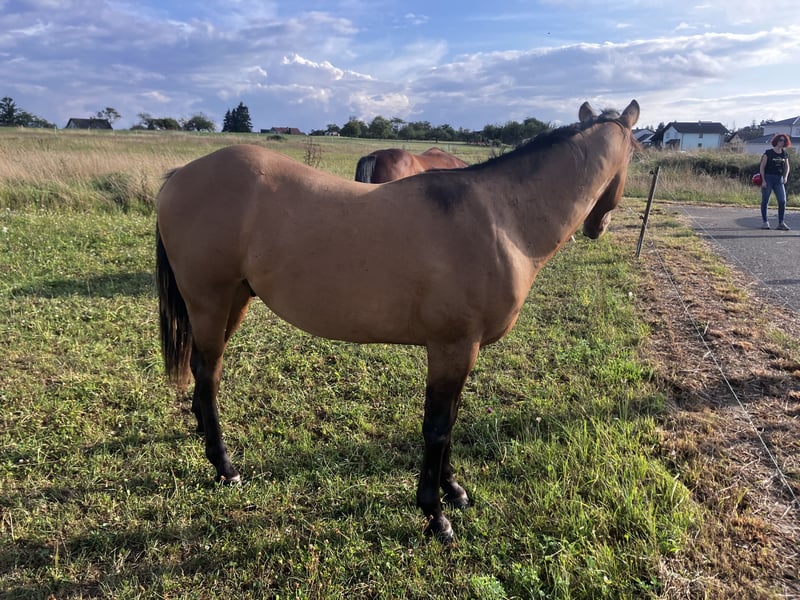 Hongre Quarter Horse de 2 ans, prometteur et bien dans sa tête. Cheval idéal pour le trail et les sorties en extérieur, il se montre très courageux, froid et sans peur face à son environnement (bruit, véhicules, animaux, obstacles naturels). Manipulé régulièrement, proche de l'homme, il apprend vite et montre un excellent mental pour son jeune âge. Convient parfaitement pour un cavalier souhaitant former un cheval polyvalent, sûr et agréable au quotidien. Panels 6 N/N 2 jähriger Quarter Horse Wallach, vielversprechend und ausgeglichen im Charakter. Ideal für Trailreiten und Ausritte im Gelände, absolut nervenstark, mutig und unerschrocken gegenüber seiner Umgebung (Lärm, Fahrzeuge, Tiere, natürliche Hindernisse). Regelmässig im Umgang, menschenbezogen, lernt schnell und zeigt für sein junges Alter ein hervorragendes Temperament. Perfekt für Reiter, die ein vielseitiges, zuverlässiges und angenehmes Pferd selbst ausbilden möchten. Weiter Informationen und Fotos auf Anfrage. 6 panels N/N