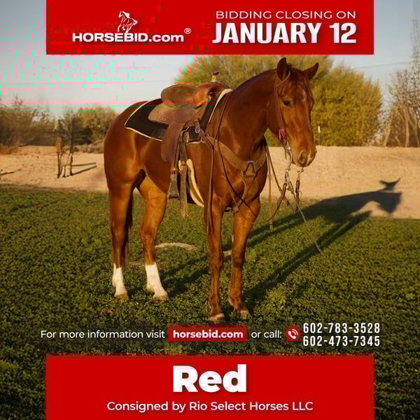 ♦️𝐍𝐄𝐖 𝐘𝐄𝐀𝐑'𝐒 𝑬𝒙𝒕𝒓𝒂𝒗𝒂𝒈𝒂𝒏𝒛𝒂♦️ Happening now thru MONDAY | JANUARY 12th - Available EXCLUSIVELY on HorseBid's website! For more details and to register visit: www.Horsebid.com CONSIGNOR CONTACT: Rio Select Horses LLC 602-783-3528 602-473-7345 LOCATION: Phoenix, AZ BREED: AQHA REGISTERED: Yes REGISTERED NAME: BV METALLIC ZAN JACK COLOR: Sorrel HEIGHT: 15.1 AGE: 3 GENDER: Gelding 2022 AQHA Gelding: "Red" (BV METALLIC ZAN JACK) If you’ve been hunting for a young horse with a big motor and a "yes sir" attitude, take a look at Red. He’s a 2022 AQHA gelding standing right at 15.1, and he’s built with the bone and substance to hold up to a long day’s work. Red is the definition of an all-around prospect. He’s got the foundation to go any direction you point his nose. We’ve had him out moving and sorting cattle, and he shows a lot of natural "cowy" instinct, but he’s just as happy picking his way through a rocky trail. Red is Soft in the bridle, moves off your leg, and has a smooth lope in both leads. He’s got a deep stop and backs up light. He is a gentleman. He stands tied quietly, stands for farrier, loads and unloads properly and travels well. He’s got a "get-to-it" mind and is ready for someone to take him to the next level. This colt isn't just a prospect; he’s a partner. Location: Phoenix, AZ Give us a call for more info / questions We can help arrange transportation 🚚 Yatza 602-783-3528 Tito 602-473-7345