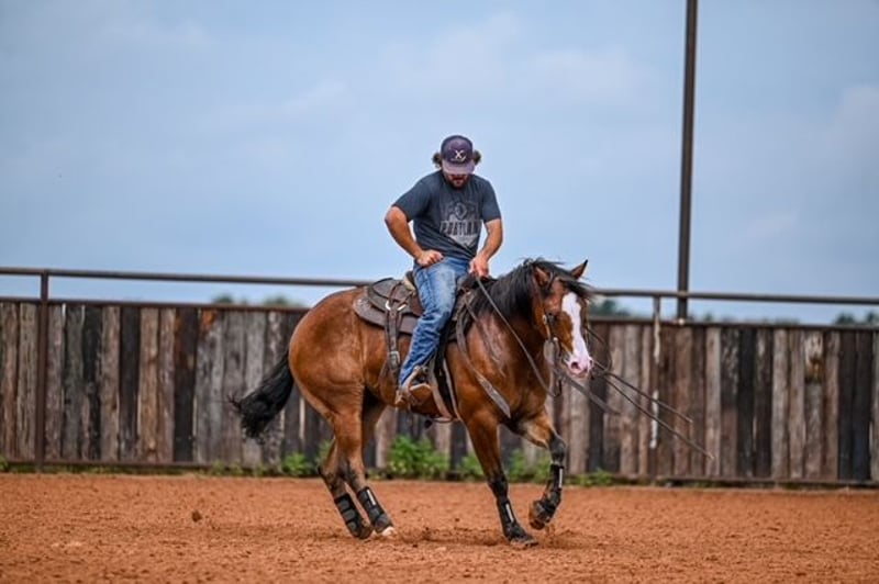 NATE BALLERINO HORSE CO's ★ RIATA BUCKLE ★ Showcase Happening now thru SUNDAY | JULY 6th - Available EXCLUSIVELY on HorseBid's website! For more details and to register visit: www.Horsebid.com CONSIGNOR CONTACT: Nate Ballerino Horse Co 254-716-9588 LOCATION: Waco,Tx BREED: QH REGISTERED: Yes REGISTERED NAME: The Unspookable COLOR: Bay HEIGHT: 15.1 AGE: 4 GENDER: Gelding The Unspookable LTE $554.00 NRHA The Unspookable “Wizard” is a breathtakingly beautiful blue-eyed bay gelding, masterfully trained and successfuly shown in the reining. Wizard is sired by Spooks Gotta Whiz and out of a money producing daughter of INWHIZABLE; Wizard is a true delight to ride and is enjoyable for any level rider! Soft and supple with a strong work ethic and a charming personality. Walks trots and lopes as pretty as you please with a terrific handle to boot. Stops like one should and has classy turnaround, crisp lead departures and a clean change. Would make a super ranch rider or step up as your next rope horse! Wizard has been pen roped on and ridden out on the ranch. He is Riata Buckle Eligible. Please Call Nate at 254-716-9588 with any questions. Nation Wide shipping can be arranged.