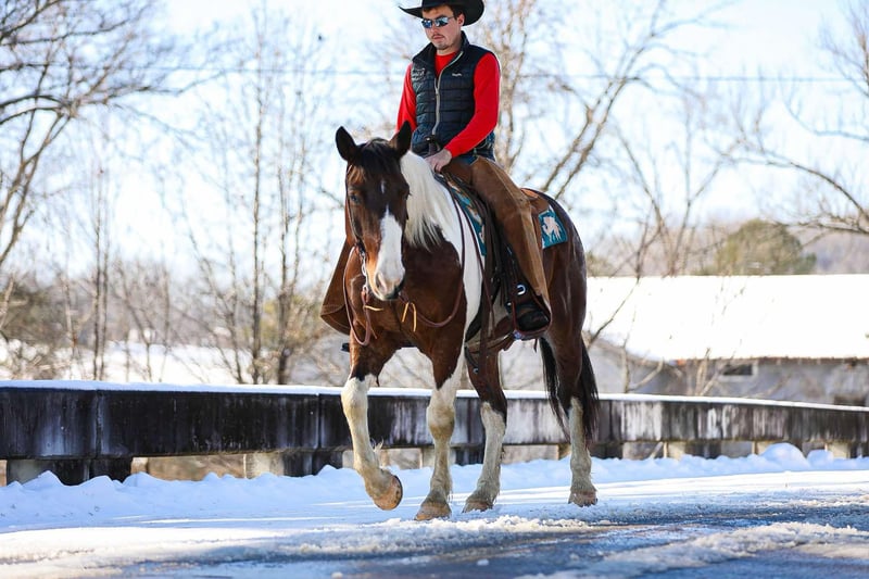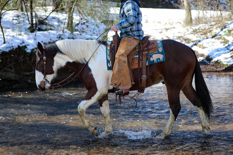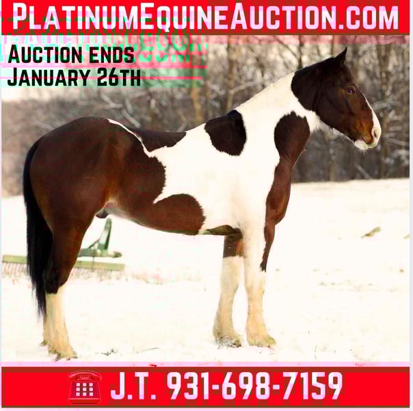 ONLINE AUCTION Place your bids at www.PlatinumEquineAuction.com Starting Bid $3500 Auction ends January 26th, 2025 Need a new saddle? Check out White Rock Saddles on our website or Facebook! Blaze is a good looking, fancy broke, 5 year old, bay tobiano, super stout built, draftcross gelding that aims to please. This is one that is a barn favorite to anyone who comes by whether it’s taking him for a swim or just feeding him treats in the pasture Blaze is sure to win you over. He stands right at 15.2hh and is spotted as good as yu can paint one! Blaze has been used for just about everything you could imagine doing on horseback. We have caught cattle, drug calves, snubbed colts, given roping lessons, done the obstacles and so much more. He is the definition of an all around gelding with a heart of gold. Blaze has been ridden hundreds of miles on a feeder calf operation and has been trail ridden in multiple states. He stands to be saddled, mounted and bathed. He’s one of the farriers favorite horses to shoe and will be one of your favorites to ride. He rides calm, quiet and safe with an attitude that’s always looking to please. He is located in Santa Fe, TN. Anyone is welcome to come see him in person or we can facetime call and see him in live-time. For more info contact J & S Equine JT 931-698-7159. ONLINE AUCTION Place your bids at www.PlatinumEquineAuction.com Starting Bid $3500 Auction ends January 26th, 2025 Need a new saddle? Check out White Rock Saddles on our website or Facebook!