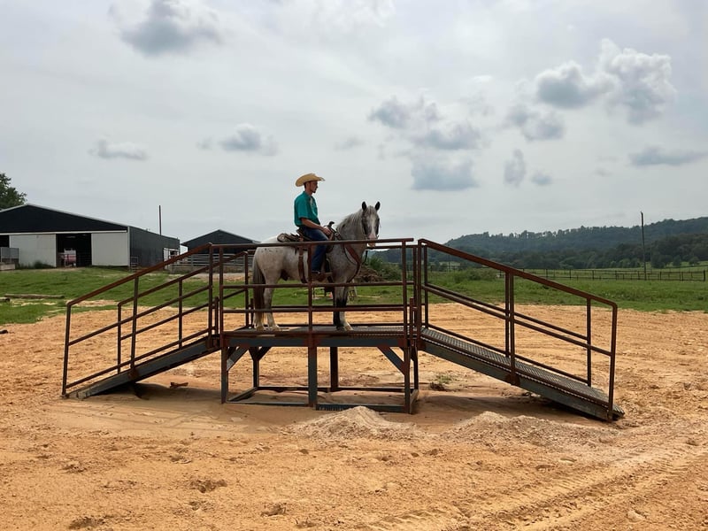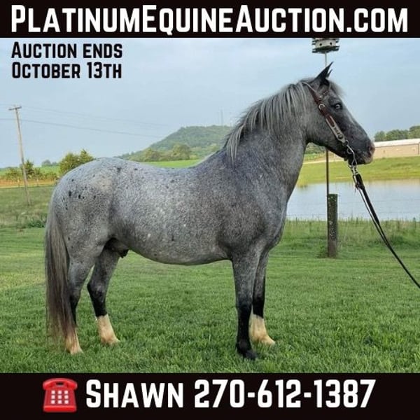 ONLINE AUCTION Place your bids at www.PlatinumEquineAuction.com Starting Bid $3500 Auction ends October 13th, 2024 Need a new saddle? Check out White Rock Saddles on our website or Facebook I’m a firm believer when you come a cross a good broke gelding you have something special. A good Gelding will give you everything they have to please you. They will never back down and will be there for you till the end. A never ending bond. Smoke is a 5 year old, Blue Roan, Quarter Horse pony, standing 13.1 hands. He has the passion and confidence as one destined to be amazing. Smoke is an amazing trail mount, started with jumping, amazing as an all around as any obstacle doesn’t bother him. Smoke would be suitable for any programs. When on the trail Smoke is eager to sure see and is in no hurry, more whoa than go style. He will follow in the back with no issues, but yet has no problem to lead a pack as well and is sure footed when navigating any trail with type of terrain he comes up on. Smoke will go through water with no issues,up and down hills and slopes with ease, through a thicket or over any log he comes across. Anywhere you point smoke, he will go that direction. He’s delightful to ride in a group or even alone. He’s not herd bound at all. Smoke has been started over jumps and being ridden English style, has plenty of vigor and movement. He would excel in absolutely anything you do with him. Under Saddle he stands to be tacked up and untacked. Takes a bridle with absolute ease. He stands to be mounted and dismounted. Smoke is unbothered by passing traffic, a ATV, or any dog whether they are barking and chasing behind him or just walking past him. Smoke will stand by a mounting block of its needed for you to mount and wait till he’s asked to step off. When at home, Smoke is such a joy to have around, and he is easy to catch. Smoke will pasture with both mares and geldings with no issues. You can put Smoke in a stall also and he will keep it neat and tidy. You can put Smoke in a cross ties or tie him to the side of a trailer. Smoke stands to be bathed and for the farrier. He is currently Barefoot can be shod but doesn’t need to be as his hooves are hard enough. Smoke has been exposed to and is pleasant around children, ATV’s, dogs, any kind of Farm Equipment, also any other type of livestock. Smoke has a bright and amazing future ahead of himself and don’t forget how amazingly beautiful his color is. He has the foundation and the ability to go any direction to be desired. Smoke is very driven and willing and continues to impress everyone he greets daily. If you have any questions or concerns or would like to make a time to come see and meet Smoke prior to adding him to your farm or family please feel free to reach out to us. We would be happy for you to come see him as would he. For more info contact Shawn Smith 270-612-1387 Located in Cave City, KY. ONLINE AUCTION Place your bids at www.PlatinumEquineAuction.com Starting Bid $3500 Auction ends October 13th, 2024 Need a new saddle? Check out White Rock Saddles on our website or Facebook