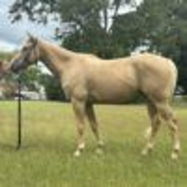 ONLINE AUCTION Place your bids at www.PlatinumEquineAuction.com Starting Bid $3500 Auction ends August 17th, 2025 Need a new saddle? Check out White Rock Saddles on our website or Facebook Bodie is a 2019 model palomino quarter horse gelding standing 14.2 hands tall. He stands to be saddled and will stand tied all day long. He is an excellent trail horse and doesn’t spook at anything in his path. He will walk out alone or with other horses on the trail. Bodie will cross anything in his path whether it be water or logs. He has been ridden bareback and with a saddle. Bodie has a very pretty, smooth trot and a very nice collected lope with a huge stop. He would make a great ranch horse as he lives having a job. He has never been taken to a barrel race, but a week ago, we hauled him and he handled the sights and sounds like he was a seasoned rodeo horse. He stays very collected in your hand and wants to please. He isn’t afraid of the dogs or tractors and stays focused on the job. Bodie has been ridden everywhere- from the trails, through town, and even on quail hunts. He is super sweet and will follow you around for hours in the pasture. He has a puppy dog personality and always wants to see what you’re up to. He is truly a pleasure to have around and is looking for his perfect forever home. Bodie loads and unloads without a second thought! UTD on coggins and vaccines. Contact Andrew Dismuke 229-347-7687 with any questions. Located in Dawson, GA. ONLINE AUCTION Place your bids at www.PlatinumEquineAuction.com Starting Bid $3500 Auction ends August 17th, 2025 Need a new saddle? Check out White Rock Saddles on our website or Facebook