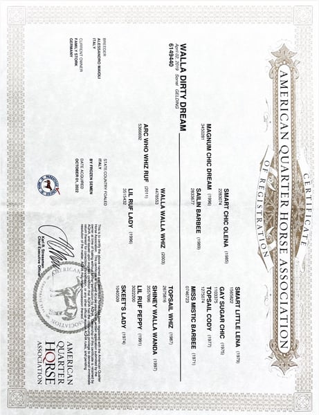 Magnum Chic Dream Gelding – Top Reining Horse with an Exceptional Character Walla Dirty Dream, aka "Magnum," is an eye-catching prospect for reining riders seeking a talented, confident, and easy-to-handle sport horse. This attractive Quarter Horse gelding will turn 7 years old in April and descends from the legendary Magnum Chic Dream, one of the most successful reining sires worldwide (over $13 million in progeny earnings). Magnum Chic Dream is not only an NRHA Hall of Fame inductee and a sire with over $13 million in earnings but is also exclusively available through the ICSI breeding program. This means his semen is not freely accessible but is carefully used for selected mares—adding to the exclusivity and value of his offspring. His dam line is equally impressive: directly out of an Arcese Producer mare by Walla Walla Whiz—a pedigree that leaves no wishes unfulfilled in the reining sport. ⸻ Character & Rideability Magnum impresses with a unique temperament combined with talent and a strong work ethic. He is: - Completely fearless in any situation - Friendly, honest, and people-oriented - Socially compatible and easy to manage within a herd - Always eager to please his rider In short: a true favorite among all riders. In daily handling, he is extremely straightforward, well-behaved, and reliable. ⸻ Training & Performance - Consistently in professional full training for approximately 4 years - Knows all reining maneuvers confidently and correctly - Very well conditioned, balanced, and sensitive to aids - Excellent for beginners, hobby riders, non-pros, and professionals alike - Tolerates rider errors and always provides a secure riding experience Magnum is fully in training as of January, ready to compete, making him an ideal partner for ambitious show riders seeking a reliable, ready-to-go horse for the upcoming season in Europe. ⸻ Additional Information - Entry paid for the European Championship - Suitable equipment (e.g., saddle) can be purchased upon request - Health certificate (AKU) can be performed at any time (costs to be borne by the buyer) ⸻ An exceptionally well-built, correctly trained reining gelding with top pedigree, outstanding character, and versatile potential—a true quality horse for a 5-star home. Further information, videos, and trial rides available upon request.