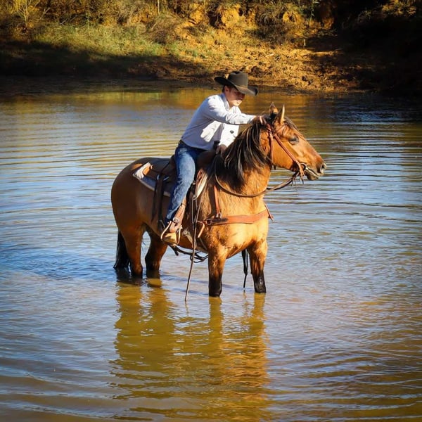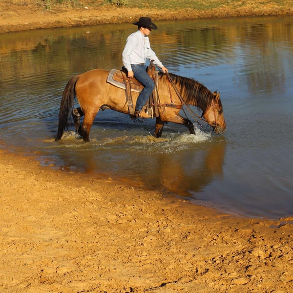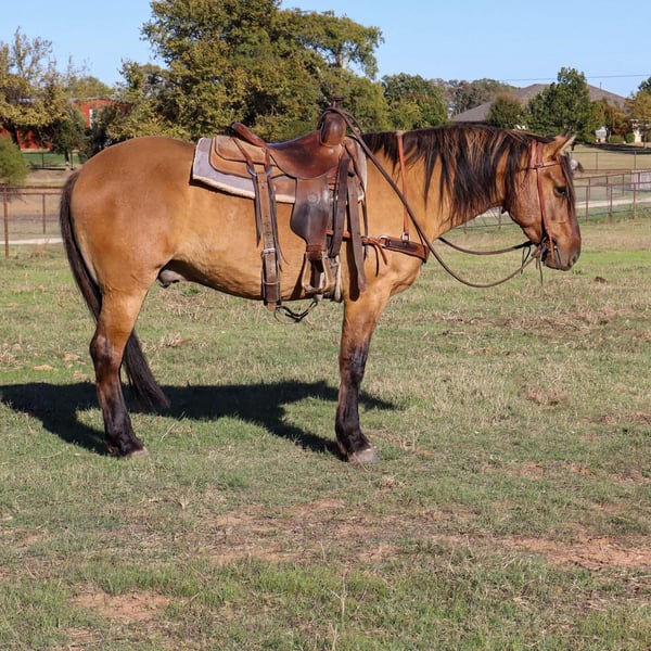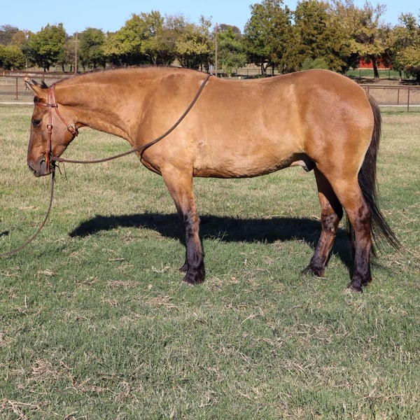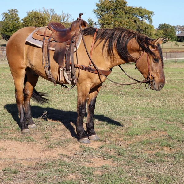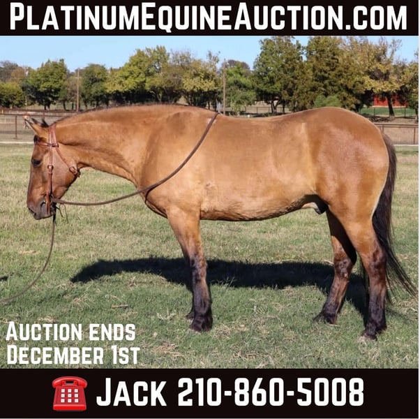 ONLINE AUCTION Place your bids at www.PlatinumEquineAuction.com Starting Bid $3500 Auction ends December 1st, 2024 Need a new saddle? Check out White Rock Saddles on our website or Facebook! “Wilbur” is a stout, handsome coming 5 year old dunskin gelding that would be a cherished member to your family! Not only is he striking with his looks but he has so much talent to offer. He is gentle, versatile, and is an overall a well trained companion at such a young age! Wilbur is a seasoned soul and has seen the sights! He is easy to go gather cattle on or just going for a non-demanding ride. He has been rode outside on many miles of trails, and all kinds of terrain. Wilbur will cross water, brush and logs with ease. He has been rode on the road and is used to all kinds of traffic and all of our heavy machinery here on the farm. Wilbur also arena rides very nicely. Trots smoothly with a level headset, lopes nice collected circles, Good stop and back up, side passes to open and shut gates and has a super easy one hand neck rein. Wilbur travels with lots of style and can go in any direction with his smart & willing mind! He hauls well, and is up for any task asked of him. He has lots of bone, standing 15hds, and is built to last. He is easy going and loves all the attention, whether it’s grooming, feeding, or bathing. Wilbur is the horse for you and can be enjoyed by everyone! Don’t miss out! For additional information or if you want to schedule a time to come see & ride Wilbur: Call or Text Jack Walker 210-860-5008. We are located in Millsap, TX, please don’t hesitate to reach out! ONLINE AUCTION Place your bids at www.PlatinumEquineAuction.com Starting Bid $3500 Auction ends December 1st, 2024 Need a new saddle? Check out White Rock Saddles on our website or Facebook!