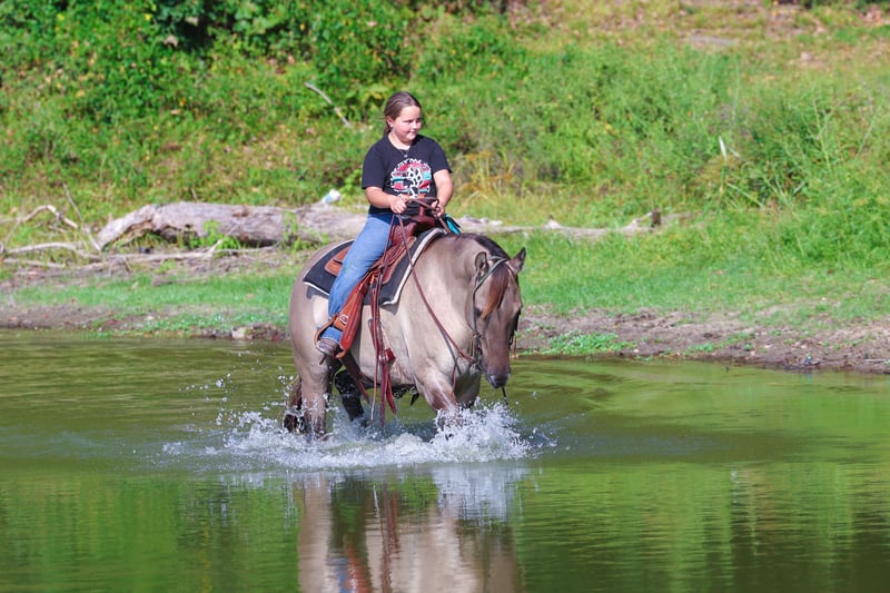 🍂 𝓐𝓾𝓽𝓾𝓶𝓷 𝑨𝑳𝑳 𝑺𝑻𝑨𝑹 𝑳𝑰𝑵𝑬𝑼𝑷 🍂 Happening now thru MONDAY | OCTOBER 6th - Available EXCLUSIVELY on HorseBid's website! For more details and to register visit: www.Horsebid.com CONSIGNOR CONTACT: MM Ranch 469-595-6289 LOCATION: Forney, TX BREED: Quarter Horse REGISTERED: Yes REGISTERED NAME: Hollywood Poco Glo COLOR: Grullo HEIGHT: 15.1 AGE: 6 GENDER: Gelding 🌟AQHA register grullo gelding!!! 🌟Yes a registered grullo gelding!!! He’s got that old fashion color everyone wants. And ONLY 6 years old!! Meet “Hollywood Poco Glo” his barn name is Woody. This is absolutely the barn favorite around here. He is 15.1 hands tall. You don’t see them like this everyday. 👉🏼 You can catch Woody in 100,000 acre pasture. He will walk right up to you. This is a kind very willing to please type. He will do anything you ask him to do. He has been used on the ranch to check cattle and fences. He crosses water, bridges, can ride him in any type of terrain. He will go out alone on trails too. Absolutely nothing brothers this horse. He is as laid back as they come. The best part is he is only 6 years old. He has the potential and ability to go on to do anything you want him to do. And he is super quiet and gentle. 💥💥Absolutely no buck or bad habits. ⚡️He sells 100% safe and sound in every way. We can help with making shipping arrangements. New coggins and health certificate will be included.