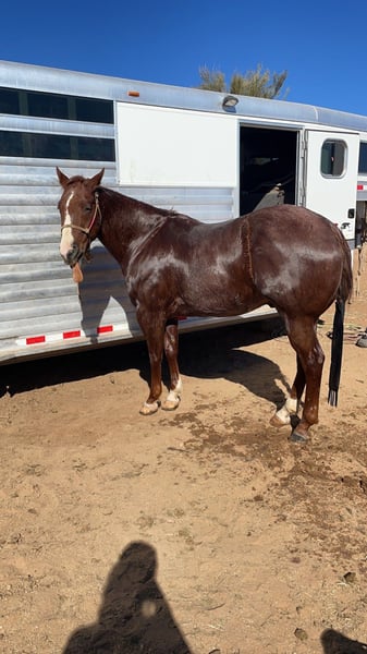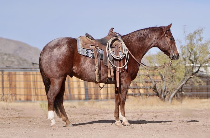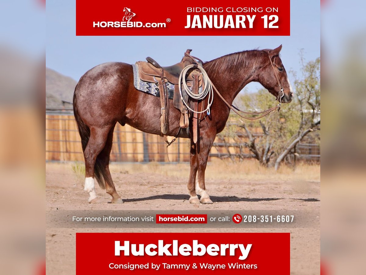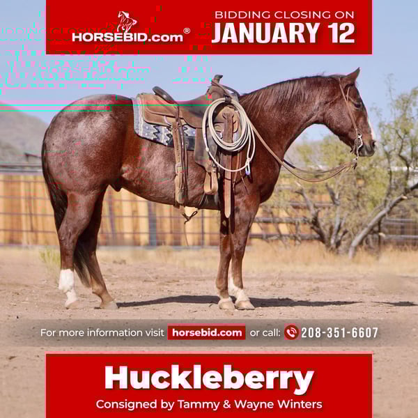 ♦️𝐍𝐄𝐖 𝐘𝐄𝐀𝐑'𝐒 𝑬𝒙𝒕𝒓𝒂𝒗𝒂𝒈𝒂𝒏𝒛𝒂♦️ Happening now thru MONDAY | JANUARY 12th - Available EXCLUSIVELY on HorseBid's website! For more details and to register visit: www.Horsebid.com CONSIGNOR CONTACT: Tammy & Wayne Winters 208-351-6607 LOCATION: Aguila, AZ BREED: QH REGISTERED: Yes REGISTERED NAME: Huckleberry Hero COLOR: Red Roan HEIGHT: 15.1 AGE: 7 GENDER: Gelding Huckleberry Hero is a 7-year-old gelding. If you’re looking for a big, stand-out, beautiful horse, he is your guy. Huckleberry stands 15.1 and weighs 1,300 lbs. He is about as conformationally correct as you could make one and built to last a lifetime. Huckleberry has been used to do just a little bit of everything. He started his career out with a cow horse trainer, where he developed a very fancy handle. He will run and slide, spin on a dime, move left and right with a cow, and lope around on a draped rein. Huckleberry then went on to life on the ranch; he’s seen long miles and knows a day’s work. He’s extremely dependable when you’ve got a yearling that needs doctored or calves that need branded. He’s been all over the trails and crossed any water, bridge, or down timber with ease. He’s sure-footed and very safe to ride in rough country. Huckleberry then went on to continue life in the arena. We have headed steers on him and sure think he’s making a good one. He runs hard, has a lot of natural rate, and a fancy move out of the corner. He’s been shown in the ranch versatility classes by riders of all levels and ages! He will babysit your young ones and is gentle enough for grandma and grandpa to enjoy as well. He truly is the special kind that’s going to work for whatever need you’ve got. He’s quiet and safe on the ground; he’s been around dogs, tarps, ATVs, and all the commotion. He’s great to shoe, bathe, clip, and haul. He gets along well with other horses and is about as unproblematic as you can get one. We’ve enjoyed having him around and hope the next person likes him as well as we have.