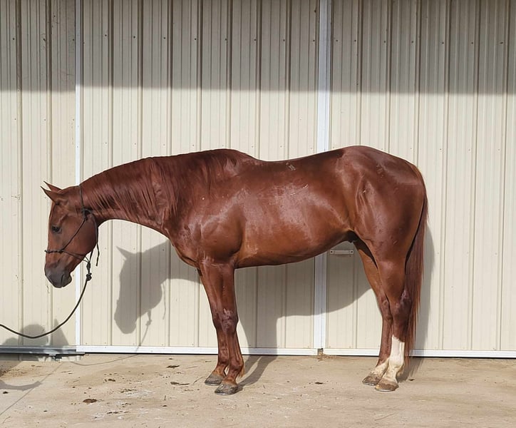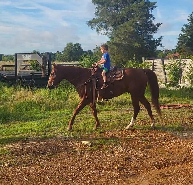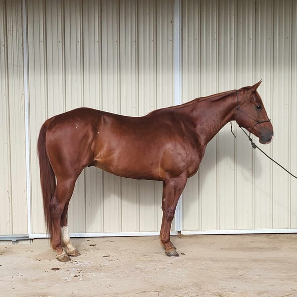 ONLINE AUCTION PLACE YOUR BIDS AT PLATINUMEQUINEAUCTION DOT COM $3500 STARTING BID AUCTION ENDS JUNE 30TH Red is a 2019 registered APHA gelding. He stands 15.2 hands tall. Red is a super gentle family type horse that has been trail ridden and used on cattle. Red requires no lunging and has zero funny business. He rides out alone or with other horses and dogs and is traffic and highway safe. He is extremely broke in the arena as well. Red will side pass to open and close gates, takes his correct leads, and is very soft in the bridle. He has a great stop. Red stands perfect for farrier, saddling, and bathing. He will stand at a mounting block or picnic table for mounting and he won’t move until your ready. We have used Red to sort cattle and then let our kids on him to walk him out and cool him down. Red has been started on heading the hotheels and will soon be ready for live cattle out of box. Reds only flaw is a superficial small rope burn scar at top of his back white sock. Red sells 100% sound and sane and will make a great addition to anyone’s barn. He is up to date on vaccines, has a current coggins, and has had his teeth done recently. Contact Alysia Conner at 270-205-0400 for any questions regarding Red. He is located in Benton, Ky.
