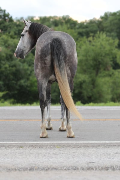 ONLINE AUCTION Place your bids at www.PlatinumEquineAuction.com Starting Bid $3500 Auction ends August 18th, 2024 Need a new saddle? Check out White Rock Saddles on our website or Facebook! I am honored to be able to offer this reliable gelding, “Bleau”! Bleau has so much to offer to his rider, he loves to please his rider! He has the potential to go in many directions, has experience as a barrel horse and a trail horse. Bleau maneuvers beautifully with ease through his slow, smooth trot and lope, you can put him on autopilot as he transition leads effortlessly. Bleau has all the right moves, you can easily navigate him with one hand on a loose rein. “Bleau” has money earners top and bottom of his papers with, including 3 triple crowns. A grandson of the great “Chicks Beduino” earnings of over $400,00 himself. “Azure Request” earning over a quarter of a million dollars. “Tiny Watch” a well known prolific barrel sire of many great horses, a great grandsire of “Bozo.” Our family has owned Bleau since he was a yearling, we purchased him as a baby out of North Dakota. It has been an honor owning this quality of gelding and developing him into the gentleman he is. Bleau has great ground manners, he loves a nice bath, stands like one should with patience and is a gentleman for the farrier. Bleau is even more enjoyable under saddle, he has a big heart and goes willingly where you point him in such a smooth gate. He crosses ditches, creeks, rides along traffic, farm equipment, dogs tagging along. I think he enjoys it just as much as his pilot. Bleau has been hauled several places in the midwest. He has been exposed to many new environments and handles himself with ease each time. He is not limited to trail riding, he has been used to check cattle and has 120+ days on barrels. Bleau loves to run barrels, he will enter the gate quietly and do his job. Bleau has been hauled to jackpots and expos at youth rodeos. He will go as fast as you ask him, with no doubt he can be clocking in the 1D with little time. He will make a very nice pole horse, he has incredible lead changes, it comes so naturally for him. I have started him on the poles. We have not hauled him to barrels races as much as we’d like this year, but he is ready to haul down the road and find his new life long partner that he deserves! Bleau is 100% sound, he is up to date on all vaccinations! Call us to meet Bleau and ask any questions you might have! We would love to help Bleau and his new owner with a smooth transition and find a loving partner! Contact Heather Stark 660-953-1476 with any questions. Located in Princeton, MO. ONLINE AUCTION Place your bids at www.PlatinumEquineAuction.com Starting Bid $3500 Auction ends August 18th, 2024 Need a new saddle? Check out White Rock Saddles on our website or Facebook!