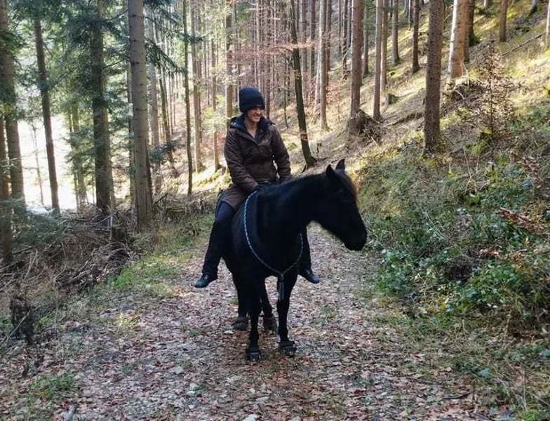 Quarter Horse gelding, AQHA registered, 8 years old, black roan without markings, approximately 14.4 hh, barefoot, healthy, naturally vaccinated, dewormed, and teeth regularly checked. Very well-groomed, extremely calm and well-trained! Good Western riding education, ridden both one- and two-handed, also perfect with any bitless bridle! Calm and obedient both in the arena and on trails, even just with a halter and without a saddle. Suitable for children or less experienced riders when handled with a trainer, also ideal for obtaining riding certificates or gaining first competition experience. Very gentle with small children—our 3-year-old has already sat on him. He is a rather relaxed type when riding but still reacts delicately to the lightest aids. With further training, he definitely has potential as a reining, trail, or ranch horse. He has already been trained in reining exercises and handles various trail obstacles well. He is also familiar with small jumps up to 60 cm. He enjoys groundwork, knows liberty work, and a few circus tricks such as Spanish walk, bowing, leg crossing, ball play, target training, free longeing, backing up to a person, mounting block, teeter, accepting and holding objects in his mouth, and more. He is excellent in the terrain; even after a three-week riding break, he can be caught and ridden bareback with just a halter—solo or in a group! He is used to having a lead horse beside him or being a lead horse himself. Calm with the farrier, veterinarian, in daily handling, loading, and traveling. He has no bad habits! He is kept in a well-maintained pasture with a mixed herd. He is familiar with almost all farm animals; we have many different species at the farm—he remains indifferent. Loud children, tractors, gunfire, etc., do not disturb him. This well-behaved boy can be visited anytime. I am looking for a really good home, preferably with loving leisure riders! He will soon move to a training stable because my riding arena is frozen in winter, making trial rides limited—his price will increase with further training. He is being sold only due to a switch to Icelandic horses, not out of necessity, and not on installment plans or loan. The listed price is slightly negotiable for serious buyers. More photos of the horse without rider will follow; videos available upon request! Transport within Austria can be arranged very affordably. For leisure riders: a very comfortable Barefoot Atlanta saddle with sheepskin seat and all necessary saddle accessories, as well as a bridle, can be purchased at a favorable price!