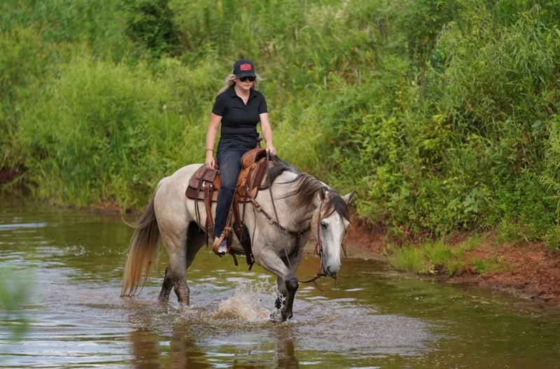 ONLINE AUCTION Place your bids at www.PlatinumEquineAuction.com Starting Bid $3500 Auction ends March 16th, 2025 Need a new saddle? Check out White Rock Saddles on our website or Facebook! CP Hollywood Jackpot aka Hollywood is one you do not want to miss! The definition of Gentle and Gorgeous! He stands at 15.1 hands tall has a pretty gray color, long mane and tail make you feel like he’s been pulled right out of a fairytale book. Hollywood makes a statement everywhere he goes! Not only is he stunning, but he checks all the other boxes too! Hollywood is super easy going and wants to always be a good boy, He also has some cool tricks up his sleeve like laying down when asked! Hollywood is the first horse to meet you at the gate to be caught and stands completely still while you put the halter on. He loves any attention he can get. This gelding is everyone’s favorite out here at the barn because he is truly a dream to ride. Hollywood is great out on the ranch, He is naturally cowy and good in the sorting pens and gathering cattle out of big pastures. He ties good, side passes to all the gates and can pull a semi truck if you roped it. Hollywood is a trooper out on the trails and is confident alone, will lead a group, or happily trail behind. He goes where you point him and doesn’t say no. He’s accustomed to lots of wild life, crazy dogs, pigs, camels, buffalo, and cattle. Blowing tarps, loud gunfire, busy traffic, and heavy machinery do not phase him either. Hollywood will literally walk through fire for you! There isn’t anything this gelding can’t handle! This gelding loves baths and loves when all the kids around the ranch groom him & loves eating the cookies right out of their hands. Hollywood has a big personality and is a fun horse to have around the barn. Located in Post Oak Bend City, TX. Call Canyon Creek Ranch Rachel 805-453-3410 with any questions. ONLINE AUCTION Place your bids at www.PlatinumEquineAuction.com Starting Bid $3500 Auction ends March 16th, 2025 Need a new saddle? Check out White Rock Saddles on our website or Facebook!