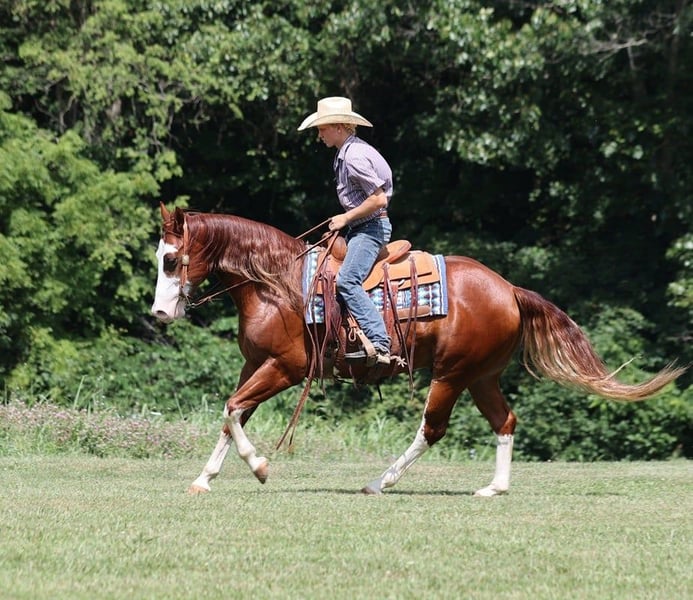 ONLINE AUCTION Place your bids at www.PlatinumEquineAuction.com Starting Bid $3500 Auction ends August 18th, 2024 Need a new saddle? Check out White Rock Saddles on our website or Facebook! All’s Lip Smacking Good aka Smack is a stout built Chestnut Overo horse standing around 15.1hh and he is a 2018 Model Registered APHA Gelding. He has an excellent pedigree going back to the famous Topsail Whiz who is an AQHA Hall Of Famer who has sired over $12 Million Dollars in offspring. The Topsail Whiz bloodline is well known throughout the reining world and also in the cowhorse world. Since owning Smack he has been used at the stockyards to pen cattle, we’ve had him out in the pasture gathering cattle and he has roped a couple as well. He has been started on the roping dummy and is doing a good job tracking it. He knows his way around the ranch and has plenty of cow sense. Smack is an excellent horse to take for a relaxing trail ride as he is great on trails and he will cross creeks, ditches, logs and navigate rough rocky areas. He has a smooth jog, a VERY VERY nice easy to set lope, a good stop, turns a circle both ways and backs with ease! Smack has had some reining training and would be an excellent horse to enter the show pen in the ranch horse classes. He rides with his head low and will keep a loose/draped rein. He has been exposed to all kinds of wildlife. He will go up or down steep slopes, across deep creeks, over downed trees, and over all types of rough terrain while still being sure footed. He has been ridden through town and is safe in traffic is not spooky. Smack is an excellent horse for any job around the ranch or trails! He is located in Level Green, KY. Feel free to call Moore Trained Horses Logan 765-265-0033 with any questions. ONLINE AUCTION Place your bids at www.PlatinumEquineAuction.com Starting Bid $3500 Auction ends August 18th, 2024 Need a new saddle? Check out White Rock Saddles on our website or Facebook!