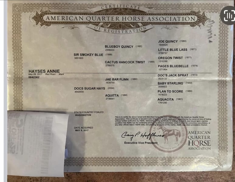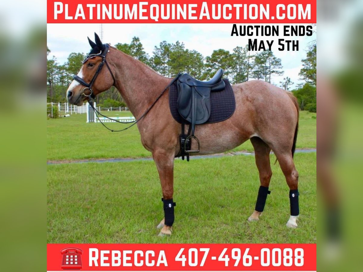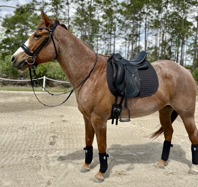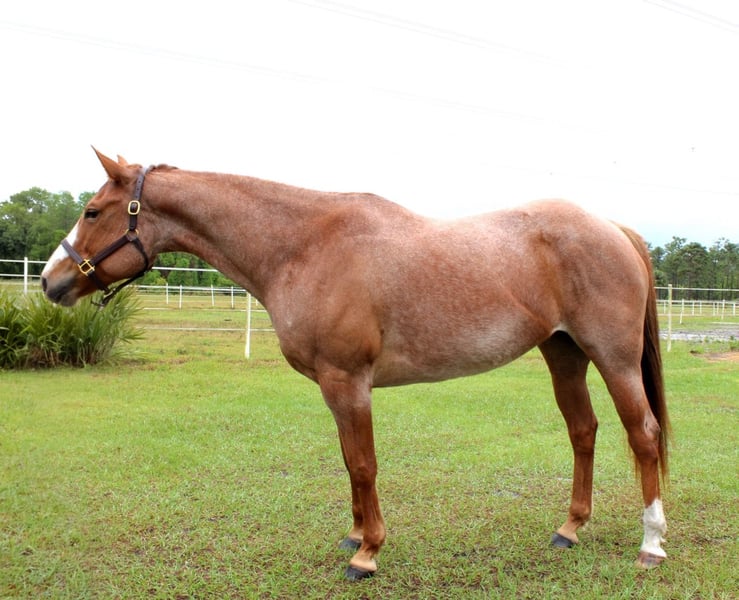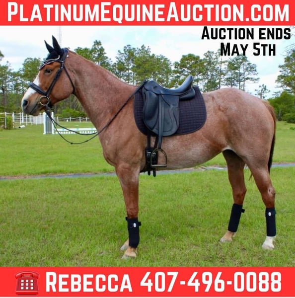 ONLINE AUCTION Place your bids at www.PlatinumEquineAuction.com Starting Bid $3500 Auction ends May 4th, 2025 Need a new saddle? Check out White Rock Saddles on our website or Facebook! Meet Hayses Annie, a striking 2017 AQHA red roan mare with the kind of foundation pedigree and color that turns heads in and out of the arena. Bred from powerhouse cow-horse lines including Blue Valentine, Joe Quincy, Doc Bar, and Hancock, Annie is a stellar broodmare prospect who’s also broke to ride and currently being worked 5-days a week. Annie is well-trained and knows her job—she just needs more miles under saddle after a year off (no fault of her own). She’s currently working 5 days a week, steadily regaining condition and confidence. With a forward, responsive style, she’s best suited for a confident intermediate to experienced rider who enjoys a little go and is comfortable putting some time on a talented mare. She has great ground manners, stands quietly for the farrier and vet, and loads with ease. While she’s made incredible progress under saddle, it’s worth noting she’s reared twice (non-maliciously)—likely out of confusion, not intent—and has shown no ongoing issues when worked consistently and fairly. She’s ready to keep progressing with the right partner. Highlights: Broke to ride – W/T/C, soft mouth, forward, auto-lead changes, leg yield and responsive, not lazy Good ground manners – Leads, ties, bathes, stands for vet & farrier Loads/unloads easily – No trailer issues Strong broodmare prospect – Blue Valentine, Joe Quincy, Doc Bar, and Hancock bloodlines Beautiful red roan color Maintenance: Requires daily Equioxx for an old front-left foot injury sustained as a youngster. X-rays available upon request of hoof– PPE welcome Currently barefoot, no special shoeing needed. Sound for light to moderate riding, ideal for trails, ranch work, or light arena use Fantastic candidate for broodmare and color production Annie is the total package for someone who wants a smart, trainable mare with tons of try and potential—whether under saddle, in a breeding program, or both. With consistent work, she’s only going to get better! Check out her sales video and reach out with any questions. For more info contact Rebecca Rodriguez 407-496-0088 with any questions. Located in Christmas, FL. ONLINE AUCTION Place your bids at www.PlatinumEquineAuction.com Starting Bid $3500 Auction ends May 4th, 2025 Need a new saddle? Check out White Rock Saddles on our website or Facebook!