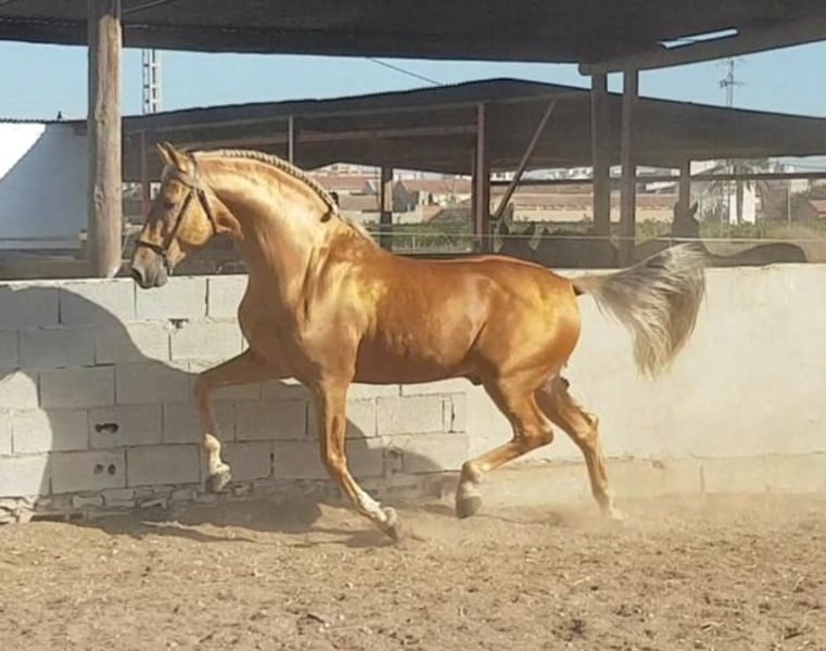 Andalusischer Hengst, 3 Jahre alt. Nicht eingeritten. Ein guter Zeitpunkt, um mit der Ausbildung zu beginnen. Sehr freundliches und umgängliches Wesen. Hat einen normalen Pass. Kein Pedigree vorhanden. Derzeit ist er 1,66 m groß. Es ist ein Hengst, noch jungfräulich. Eine Kastration ist möglich.