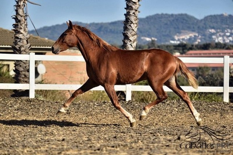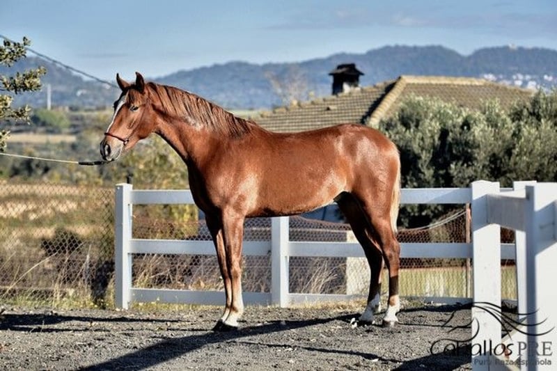 Adorable 3-year-old chestnut stallion with a current height of approximately 1.57 m. He is accustomed to being lunged casually. Always cooperative and eager to work. A lovely, small chestnut stallion with excellent movement and a sweet, charming temperament. He holds papers from the Spanish breeding association Ancce and comes from a high-quality, dressage-oriented bloodline. X-rays have been taken without any findings. Location: Barcelona, Spain He can be laid down on site upon request. If you would like more information about him, please contact us by phone. We are happy to send videos after a personal conversation. Anonymous inquiries will not be answered. Transport can be arranged worldwide. Viewings are possible at any time by appointment.
