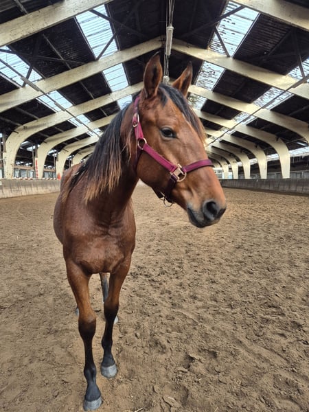 Hallo, Ik zoek een nieuw huisje voor mijn 2,5 jarige merrie. Wordt in 2026 3 jaar oud. Kruising Pre x volbloed. Staat in de opfok volledig onbeleerd. Mooie grote merrie. Heel sociaal naar mens en andere paarden. Loopt leuk en nog nooit iets gemankeerd in afgelopen jaren.
