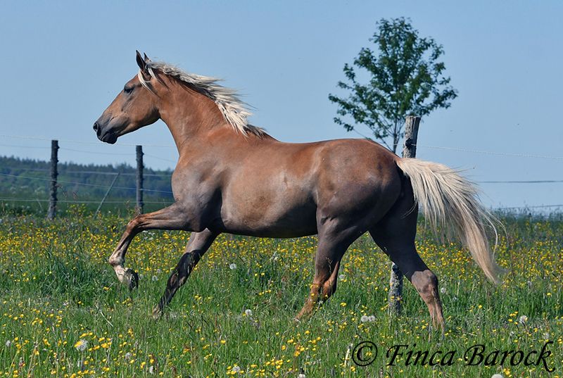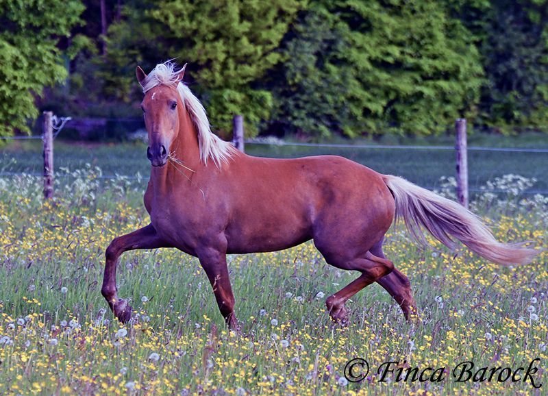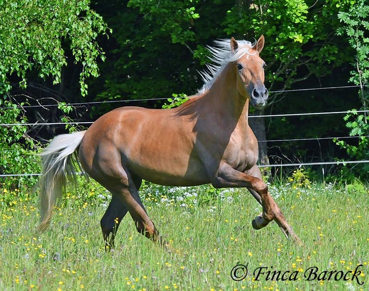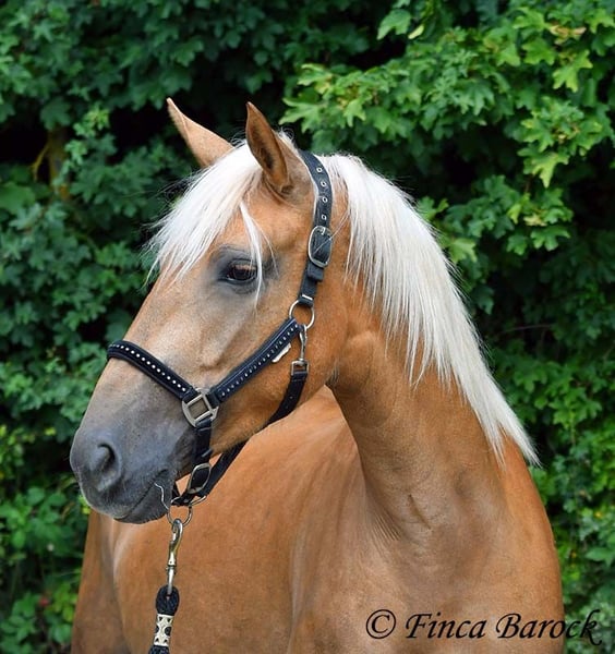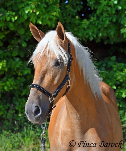Breed: Andalusian Name: Barbie Gender: Mare Height: 157 cm Age: 03.02.2021 Color: Palomino Price: €7999 Father: n/a Mother: n/a Barbie - the name says it all! This pretty lady in a compact format is a real eye-catcher. She was allowed to settle in with us first and is now gradually being prepared for her future as a riding horse. Currently, she is being lunged with a side reins and saddle and is familiar with the rider's weight at the walk. Barbie was a bit shy in the first few days, but quickly warmed up and is already enjoying cuddles and affection. We are continuing to introduce her step by step to life as a riding horse. In groundwork, she is becoming more routine and enjoys working with us. She also loves going for walks and appreciates new input. Barbie can be a bit unsure in unfamiliar situations at first, but she quickly gains confidence and trusts the experienced person beside her. Of course, Barbie can also stay in training with us. She is used to being in a herd and is very compatible with other horses. Barbie is still fully developing and will grow a bit more. Due to her compact stature, she will be suitable for slightly larger riders as well. Includes clinical veterinary examination and X-rays. Contact: Finca Barock, Tel. 0173-696 31 81, 56291 Wiebelsheim