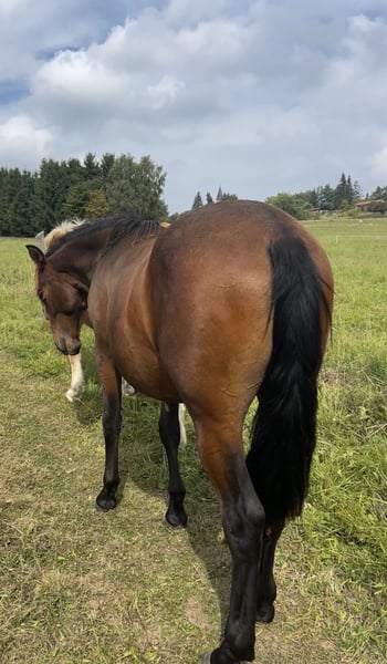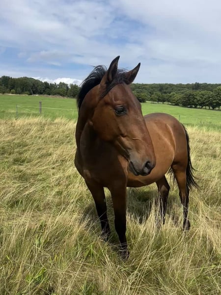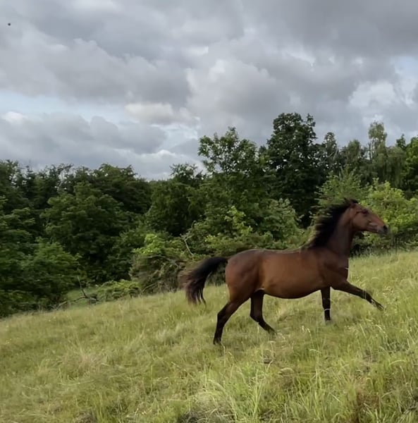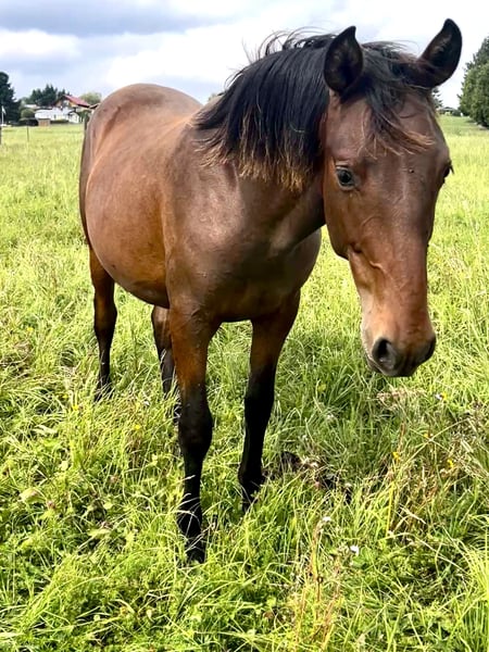 Mein 1,5 jähriger Wallach sucht sein Glück - vielleicht bei dir? Mein höflicher und zugewandter Bursche liebt die Gesellschaft von Menschen und möchte gern alles recht machen. Für sein junges Alter ist er schon sehr souverän und versucht stets zu verstehen, was gefordert ist und möchte es immer recht machen. Er ist Tetanus geimpft, regelmäßig entwurmt. Sein Endmaß wird ca 160cm sein.
