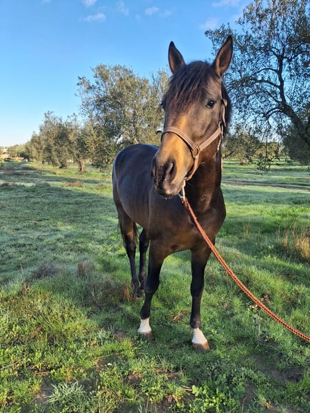 Zum Verkauf steht unser 3,5-jähriger Cruzado Wallach. Er ist aktuell ca. 155 cm groß und befindet sich in der Grundausbildung. Unter dem Sattel zeigt er sich äußert lernwillig, möchte stets gefallen und alles richtig machen – Er war mit uns bereits am Strand sowie in großer Gruppe im Gelände. Im Umgang ist er sehr freundlich, unkompliziert und anhänglich. Er läuft brav an der Longe, kennt den Schmied und Spaziergänge. Er läßt dich gut verladen. Standort: Wülfrath NRW Bei ernsthaftem Interesse gerne nähere Infos oder Videos per PN.