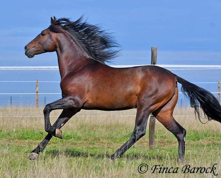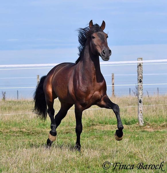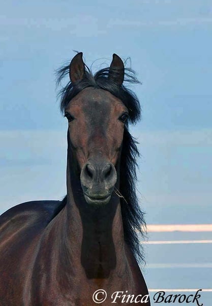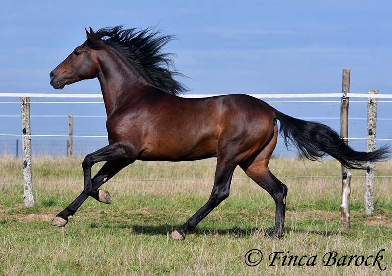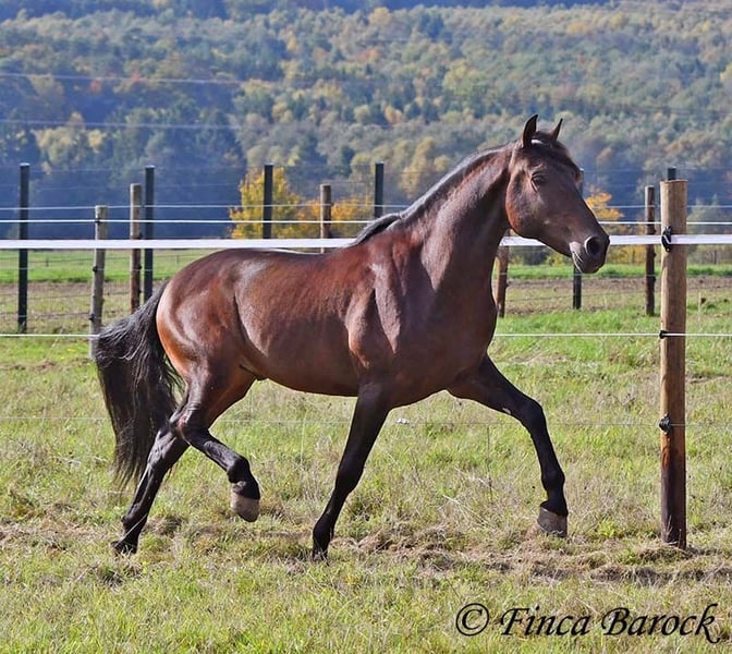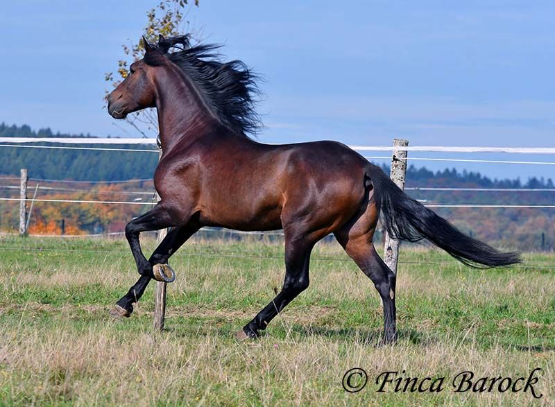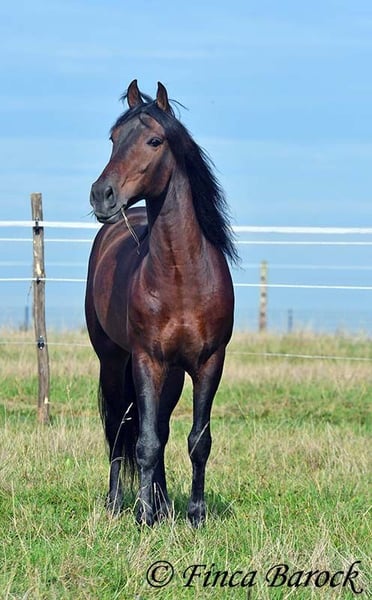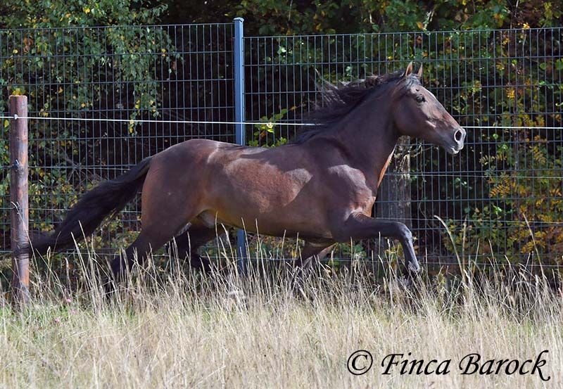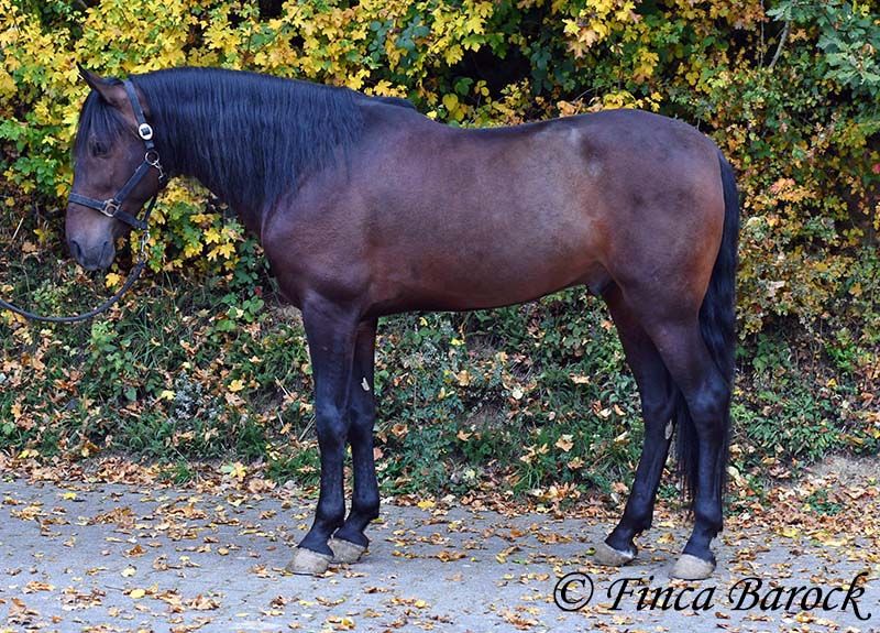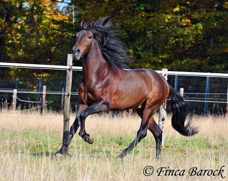 Breed: Andalusian Name: Historcio Gender: Gelding Height: 15.9 hh (159 cm) Date of Birth: June 6, 2020 Color: Dark Brown Price: €7,900 Sire: Unknown Dam: Unknown Historico is a slender, expressive young horse with a typical Campaneo gait. His dark brown coat and striking appearance make him a real eye-catcher. Initially, Historico needs a moment to settle in, but once he does, he becomes very attentive and affectionate towards his handler, enjoying long grooming sessions. He also likes to participate and often offers to be brushed or back-scratched. He can benefit from a variety of stimuli. A blanket in the stall? Perfect toy. A ball in the stall? He loves to play with it repeatedly. ❤️ Historico is experienced in trail riding and enjoys wandering through the woods. He has also shown himself to be exemplary in traffic. In the arena, we are continuing his training, and he already has a solid foundation, demonstrating a good willingness to learn. Overall, Historico tolerates small rider mistakes well. He tends to be a bit lively and may try to follow a slightly inconsistent rider, but he is by no means lazy or dull. He offers a stylish, energetic ride with comfortable movements. Includes clinical veterinary examination and X-rays. Contact: Finca Barock, Tel. 0173-696 31 81, 56291 Wiebelsheim