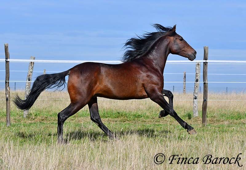 Rasa: Andaluzjańska Imię: Historcio Płeć: Wałach Wzrost: 159 cm Data urodzenia: 06.06.2020 Kolor: Brązowy Cena: 7 900 € Ojciec: brak danych Matka: brak danych Historcio to szczupły, energiczny chłopak o typowym campaneo. Jego ciemnobrązowa sierść i wyrazista prezencja czynią go prawdziwą ozdobą. Historcio potrzebuje chwili, aby się oswoić, ale potem jest bardzo przywiązany do swojego człowieka i uwielbia długie głaskanie. Chętnie też współpracuje i odwdzięcza się głaskaniem. Ogólnie wszystko mu się przyda. Koc przed boksem? Idealna zabawka. Piłka w boksie? Świetnie się nią bawi i potrafi się nią zajmować przez cały czas. ❤️ Zna różne tereny i uwielbia wędrówki po lesie. Również w ruchu ulicznym zachowywał się wzorowo. W kole od nas jest dalej rozwijany. Ma dobrą bazę i jest bardzo chętny do nauki. Ogólnie Historcio toleruje drobne błędy jeźdźca. U niego można trochę ponarzekać, ale nie jest ani leniwy, ani znieczulony. Z nim można mieć eleganckiego, energicznego konia o wygodnym chwiejnym chodu. W cenie badanie kliniczne i zdjęcia rentgenowskie. Kontakt: Finca Barock, tel. 0173-696 31 81, 56291 Wiebelsheim