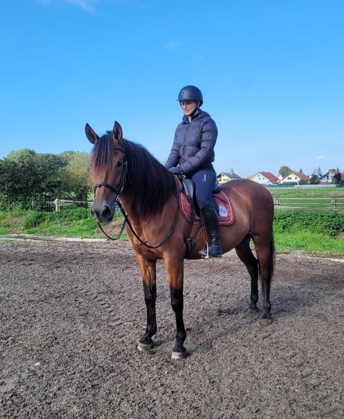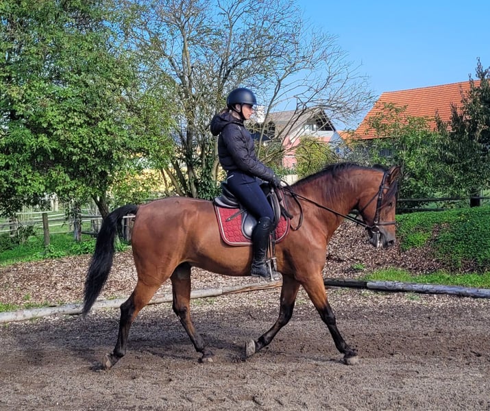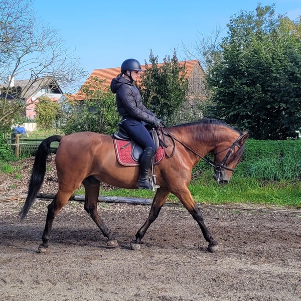 Imposing appearance, elegance, calmness, reliability ALEJANDRO is a beautiful, elegant dark brown Andalusian Cruzado gelding of the highest class, whom we can also easily imagine under a Western saddle. ALEJANDRO impresses not only with his imposing appearance but also with his calmness and serenity. His cool demeanor allows even a somewhat insecure rider to quickly gain confidence in this magnificent horse. ALEJANDRO forgives riding mistakes and responds when he senses that his rider is becoming uncertain. ALEJANDRO is a horse that literally looks out for his rider. ALEJANDRO is very easy to ride and extremely comfortable to sit on. He is very people-oriented and loves to be pampered. He especially enjoys working with children and teenagers. We have yet to discover anything that could significantly disturb this magnificent horse's calmness. Whether in the arena, all-weather arena, or on the trail, ALEJANDRO moves forward well, is not pushy, but also not too fast. ALEJANDRO is an ideal family horse that adapts to the needs of his rider, who adjusts to him. Not only under saddle but also during groundwork and in everyday handling, ALEJANDRO provides security through his good-natured temperament and demonstrates his great trust in humans. With further training, we can also envision ALEJANDRO as a THERA horse or as a teaching horse in a school setting. A horse that does not present his human with new challenges every day. For more information about our horses and our work, please visit www.ps-seitle.de or feel free to contact us by phone at 0171/5269002 Hubert Seitle 0151/12775701 Uta Großmann THERA HORSES PferdeSport Seitle in DONAUMOOS