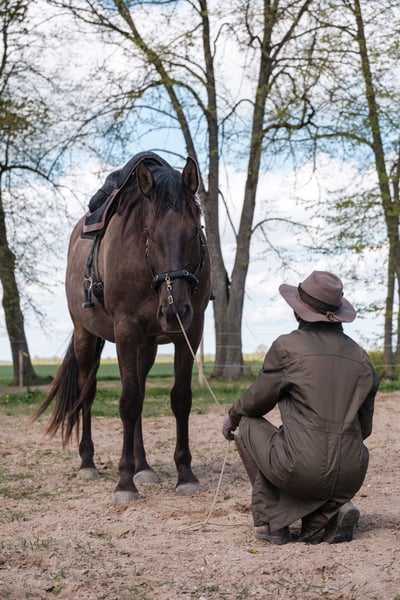 Jeśli szukasz młodego klejnotu, który nie jest jeszcze "zepsuty", jak mówią, ale zamiast tego, którego wola i autentyczność zostały starannie pielęgnowane, a chęć współpracy kultywowana - jest to rzadka okazja. 6-letni andaluzyjski/hanowerski wałach Lord of Peace (Miervaldis): Został wychowany w środowisku rodzinnym i od najmłodszych lat był codziennie obsługiwany. Odbył wiele długich wędrówek z innymi końmi (prowadzenie z ziemi). Ma doświadczenie z parasolami, plastikowymi plandekami, piłką, dźwiękami, maszynami itp. Ogólnie rzecz biorąc, ma duże doświadczenie z ziemi, wykonał proste sztuczki, takie jak wejście na piedestał, krok hiszpański, swobodne skoki, pracował z Equiband i tyczkami cavaleti. Ma solidne wykształcenie w pracy na lonży. Żyje 24/7 na zewnątrz z wolnym wejściem do stajni w mieszanym stadzie 4 koni, otrzymuje odpowiednie suplementy itp. i nie miał żadnych problemów zdrowotnych. Oczywiście regularne wizyty u ferriera (chodzi boso) i prace dentystyczne są na bieżąco. Jest mieszańcem hanowerskiej mamy (Harmony - czarna klacz widoczna na zdjęciach) i ogiera PRE Ligero de Gredos. Dziadek PRE Revoltoso XXIX, rodowód dostępny tutaj: https://lwhorse.lv/horse/57247 Zdjęcia rentgenowskie pleców wykonane w wieku 3 lat wykazały całowanie kręgosłupa, więc wprowadzono odpowiedni protokół treningowy, aby rozwinąć go jako zdrowego i wygodnego towarzysza jazdy konnej. Obecnie jest poddawany 2 zabiegom chiropraktyki rocznie, jego plecy nie są bolesne, a on stoi silnie i dobrze utrzymuje mięśnie podczas rekreacyjnego reżimu. Zarówno weterynarz, jak i chiropraktyk dali zielone światło do dalszego uruchamiania go pod siodłem. Są oczywiście rzeczy do rozważenia- 1) zawsze odpowiednia rozgrzewka, bez zimnego grzbietu 2) odpowiednie ujeżdżenie w ręku, treningi na drągach i nasz osobisty faworyt - Balance Through Movement Method i Pillar 1 3) upewnienie się, że siodło jest odpowiednio dopasowane do kręgosłupa. Wszystkie te trzy rzeczy powinny być nienegocjowalne dla każdego konia, ale tutaj nie "ujdzie ci to na sucho". Obecnie jest przygotowywany do jazdy, więc oczywiście jest "zielonym" koniem dla kogoś, kto może kontynuować jego edukację samodzielnie lub z pomocą trenera. Jego dotychczasowy trening był powolny i stały, polegał na budowaniu solidnych podstaw i wspieraniu współpracy. Trzeba poświęcić mu czas, by mógł kontynuować naukę w swoim tempie, ale gdy już wie, czego się od niego wymaga - robi to z niekończącą się energią i entuzjazmem. Załadunek do przyczepy: ładuje od razu i łatwo (poniżej 30 sekund ;) to był duży priorytet, aby przygotować do tego wszystkie nasze młode konie od najmłodszych lat. Odbył 6 dużych przejażdżek (230 km każda do naszej nadmorskiej posiadłości) z towarzyszem i dobrze podróżuje. Jednak NIE jest gotowy do podróżowania SOLO, tylko z koniem towarzyszącym, aby zapewnić młodemu człowiekowi dalsze pozytywne doświadczenia. Został wychowany jako koń rodzinny i jestem gotowy, aby stać się czyimś jedynym! Godny zaufania i stały towarzysz. Jest wszechstronnym koniem i będzie się dobrze rozwijał dzięki różnego rodzaju aktywnościom razem ze swoją osobą - niezależnie od tego, czy jest to jazda konna, jazda konna, hacking, praca ujeżdżeniowa czy zwykłe wspólne spacery. Jeśli wzbudził Twoje zainteresowanie, zapraszamy do odwiedzenia nas i poznania go.