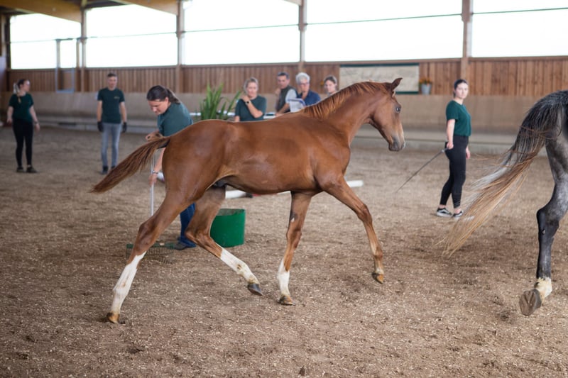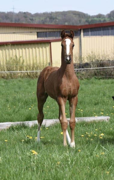 Noble semental de un año que no deja nada que desear. Criado en la 5ª generación en nuestra yeguada, Ikar crece con cuidado y edad adecuada en un rebaño de su misma edad. Nuestros potros están acostumbrados al contacto humano desde el primer día, sin restringir su libertad. Ya domina el ABC del potro, como el herraje, la vacunación básica contra el tétanos por el veterinario y la conducción con ronzal con gran éxito. Se caracteriza por una conformación muy correcta, muchos puntos de caballo de monta y un tipo expresivo. Podemos imaginarnos a Ikar como refiner o como un gran caballo de monta. Su padre Asagao xx ya tiene varios hijos que han triunfado en la BuCha de Warendorf. Su madre Isolde desciende de Fandsy xx, que compitió en el Campeonato del Mundo de caballos jóvenes de concurso completo en Francia. Un pedigrí que, por lo tanto, es muy conocido entre los criadores (angloárabes). Puede trasladarse en cualquier momento o quedarse para seguir criando. Más información también en ¡www.gestuet-rhoen.de o por teléfono! El transporte puede ser organizado por un cargo extra. Es posible concertar una visita.