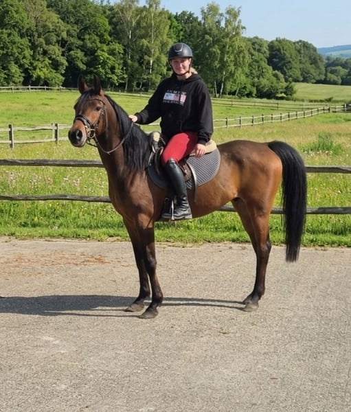 Unsere liebenswerte Araberstute Zirah sucht neuen Bestplatz❤️ Unsere 7 jährige Araberstute Zirah (geburtsjahr 2019, ca. 1,55 m groß). Wer einen typischen Araber sucht, wird sie lieben! Ihre volle und historische interessante Abstammung macht ihr Bild auch für die Zucht sehr interessant. Zirah ist unglaublich lieb und anhänglich, im Umgang absolut brav und aufgeschlossen. Sie ist sensibel, aber im positivsten Sinne. Zirah ist sehr lernwillig und will alles richtig machen. Sie ist kein Pferd für den allerersten Anfänger, der noch gar keine Balance hat, aber für jeden, der die Grundbegriffe (links, rechts, Gas, Bremse) sicher beherrscht und ein bisschen Gefühl mitbringt, ist sie eine ganz feine Partnerin. Zirah ist nie bösartig oder unwillig! Hat man sich einmal mit ihr eingefügt, wird sie ein absolut verlässliches Pony sein. Sie geht auch brav ins Gelände, egal ob alleine oder in der Gruppe. In der Herde ist sie unkompliziert und verträglich – sie war bei uns sogar schon problemlos mit anderen Pferden in einer Sammelbox. Sie kennt Tag und Nacht draußen sein, ist aber auch im Stall verträglich. Zirah ist gesund und sehr unkompliziert. Sie hatte jetzt aus privaten gründen eine längere Reitpause, was sie aber nicht davon abhält, ein perfektes Freizeitpferd zu werden. Wir wünschen uns für sie einen Menschen, der ihre feine Art zu schätzen weiß und ihr ein liebevolles Zuhause gibt. Alle Angaben ohne Gewähr Keine Verfügung keine Raten // Transport überall hin möglich! Probereiten mo-fr 25€ Sa-so 30€ Vorführen (immer) 10€ Meldet euch gerne! 01703718888
