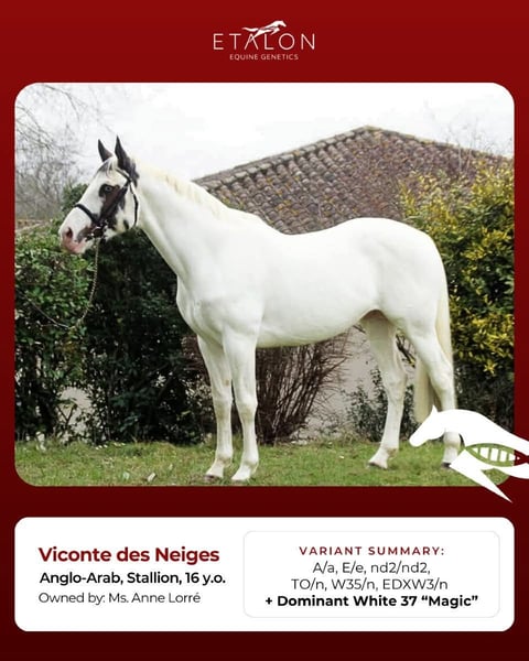 Seltene Anglo-Arab-Pouliche, Pie DW 37 „Magic White“, basierend auf einer Alezane, von Viconte des Neiges und Ratina de Brunet, Tochter von ZANDOR Z. Die mütterliche Linie ist gut vertreten im Bereich Vielseitigkeits- und Springwettbewerbe; die Mutter ist die eigene Schwester eines erfolgreichen Vielseitigkeitsreiters mit einem ICC-Wert von 136, qualifiziert für das französische Nationalteam. Brüder und Schwestern der Pouliche treten erfolgreich in Vielseitigkeit und Springen an, darunter ihr eigener Bruder Iso 114 im Alter von 4 Jahren, qualifiziert für das Finale des klassischen Zirkels. Pinky zeichnet sich durch ein schönes Modell und elegante Bewegungen aus (bemerkenswert bei Zuchtveranstaltungen) sowie durch ein außergewöhnlich freundliches Temperament, typisch für ihre Herkunft!