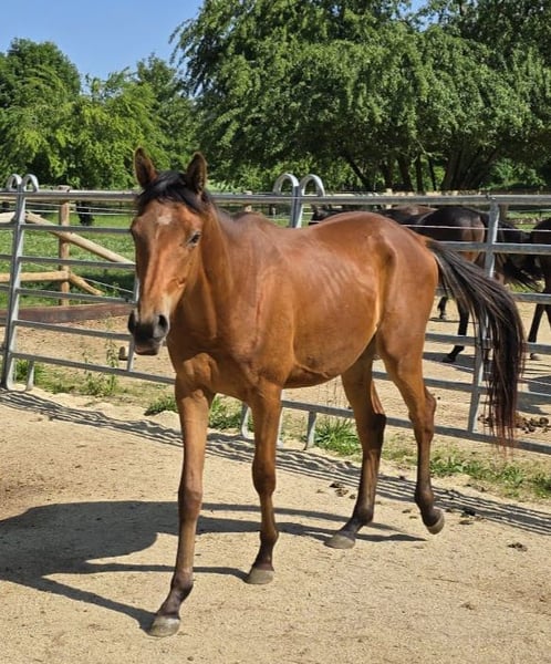 Aquí te presento mi caballo de 2 años, un potro de color castaño. Tiene un carácter sensible y gentil, y en el grupo de caballos suele ser sumiso. Debido a su estructura delicada, se espera que su altura se mantenga en aproximadamente 1,53 m. Este joven potro es ideal para amantes de los caballos que quieran abordarlo con paciencia y cariño. Como lamentablemente mordisquea, lo vendo a un precio muy asequible. Es perfecto para personas que disfruten trabajando con caballos jóvenes y quieran ofrecerle una buena base. Si estás interesado, me encantaría saber de ti ☀️