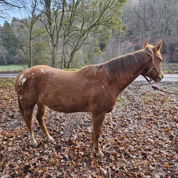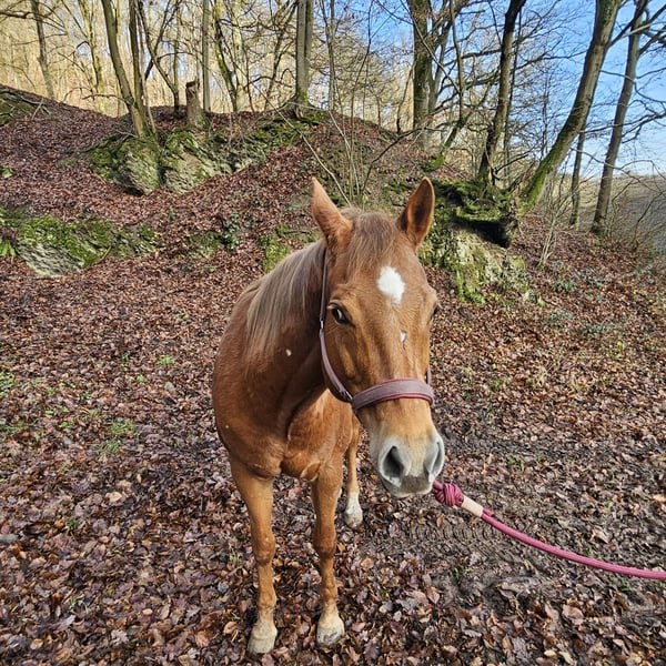 Zum Verkauf steht meine fast 10-jährige Stute mit einem Stockmaß von ca. 157cm. Sie hat vor einigen Jahren eine Grundausbildung erhalten, wurde danach jedoch nur selten geritten, überwiegend im Gelände. Seit sie in meinem Besitz ist, wurde sie langsam und schonend wieder an die Arbeit herangeführt und mehrmals geritten. Auch an die Bodenarbeit wurde sie behutsam herangeführt und macht dabei sehr gut mit. Charakterlich ist sie nicht schreckhaft und absolut lieb, benötigt jedoch klare Regeln und eine konsequente Führung. Sie eignet sich als Freizeit- und Geländepferd für Reiter mit etwas Erfahrung. Platz vor Preis. Weitere Informationen gerne auf Anfrage.