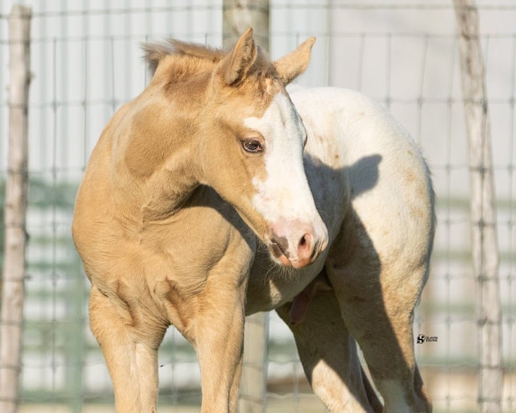 🌟𝑨𝒑𝒓𝒊𝒍 𝐀𝐋𝐋 𝐒𝐓𝐀𝐑 𝐋𝐈𝐍𝐄𝐔𝐏🌟 Happening now thru MONDAY | APRIL 6th - Available EXCLUSIVELY on HorseBid's website! For more details and to register visit: www.Horsebid.com CONSIGNOR CONTACT: Slavin Equine 317-677-5403 LOCATION: Whitesboro, TX BREED: ApHC REGISTERED: Yes REGISTERED NAME: Rewarded In Jewels COLOR: Black Appaloosa HEIGHT: 16.1 AGE: 12 GENDER: Mare If you’re looking for a mare that combines beauty, presence, and personality, Naomi is sure to impress. With her dark, smoky coat, bold bald face, striking blue eyes, and a big, beautiful blanket, she is nothing short of stunning! Naomi is the kind that instantly turns heads wherever she goes. A registered ApHC mare, sired by Brokers Reward and bred by the legendary Iron Horse Ranch, she is a true reflection of elite quality and proven consistency. This is a big, shapely mare with substance and balance, paired with a professional, easygoing attitude that makes her a pleasure to have in any barn. But Naomi offers far more than just looks—she has an exceptional personality to match. She is incredibly kind, gentle, and people-oriented, thriving on attention and affection. Her sweet nature truly sets her apart, and she has proven herself to be an outstanding mother. At her side is her 2026 ApHC palomino colt, “Johnny,” a standout in his own right. Born February 13th, and sired by the accomplished Tru Legacy (earner of $13,000+ and 3-Time Reserve World Champion), Johnny is already displaying excellent conformation, a kind eye, and a willing disposition. With his white face, four white socks, and bold blanket, he is sure to turn heads wherever he goes. He has begun halter breaking and has been straightforward and eager to learn every step of the way. Naomi has been confirmed in foal to The Last E, with a last breeding date of February 23, 2026, and an expected due date of January 29, 2027. Palpation videos are available in the gallery above. This offering is a true 3-in-1 opportunity: * Naomi (proven, quality mare) * Her 2026 palomino colt at side * Foal in utero by The Last E (2x AQHA World Champion, 5-panel N/N) All paperwork is complete and in perfect order for the mare, the colt, and the foal in utero. We are happy to assist with shipping anywhere in the United States or even internationally! Naomi and her sister Wynona have been together long-term and get along exceptionally well, as do their foals. While they would happily transition to a new home together, Naomi is adaptable and integrates easily with other mares. Come visit us in Whitesboro, Texas, and see for yourself why this stunning, sweet mare and her standout colt leave such a lasting impression. For more information, contact Parker at 317-677-5403.
