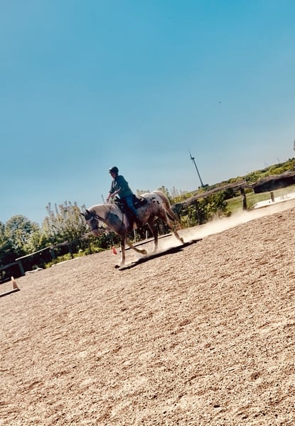 Zum Verkauf steht eine Appaloosa-Stute mit wunderschönem, auffälligem Fellmuster und viel Ausdruck. Sie wurde vorletztes Jahr im Juni im Alter von neun Jahren angeritten. Anschließend war sie drei Monate in professionellem Vollberitt und wurde danach von mir regelmäßig weiter gearbeitet und durch Reitstunden gefördert. Die Stute wurde western geritten und ist gebisslos mit Bosal ausgebildet, was ihr sehr gut liegt und ihr angenehmes, feines Reiten ermöglicht. Sie ist kein Anfängerpferd. Als sensible Stute braucht sie etwas Zeit, um Vertrauen zu ihrem Menschen aufzubauen. Gibt man ihr diese Zeit, zeigt sie sich sehr gelehrig, motiviert und arbeitsfreudig. Sie lernt schnell und hat große Freude daran, neue Aufgaben zu bekommen. Abwechslung und gemeinsame Arbeit wie z.B. Bodenarbeit machen ihr sichtbar Spaß, und mit zunehmender Sicherheit sind klare Fortschritte erkennbar. Im Gelände war sie bereits mehrfach mit mir unterwegs – sowohl in der Gruppe als auch alleine. Das hat bisher sehr gut funktioniert. In manchen Situationen kann sie etwas schreckhaft reagieren, was man einkalkulieren sollte. Diese Reaktionen sind jedoch gut händelbar und kein unkontrolliertes Verhalten, sondern eher Ausdruck ihrer Sensibilität. Eine tolle Stute für einen erfahrenen, ruhigen Reiter, der Freude daran hat, Vertrauen aufzubauen und gemeinsam mit seinem Pferd zu wachsen – kein fertiges Pferd, sondern ein Partner mit Potenzial. Bei mir wurde sie regelmäßig entwurmt und geimpft. Weitere Fragen beantworte ich gerne.