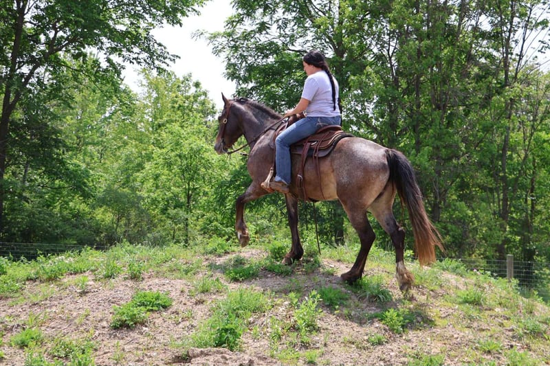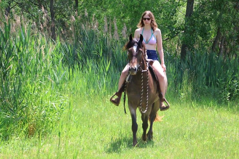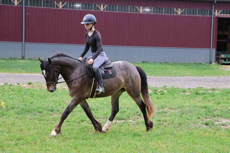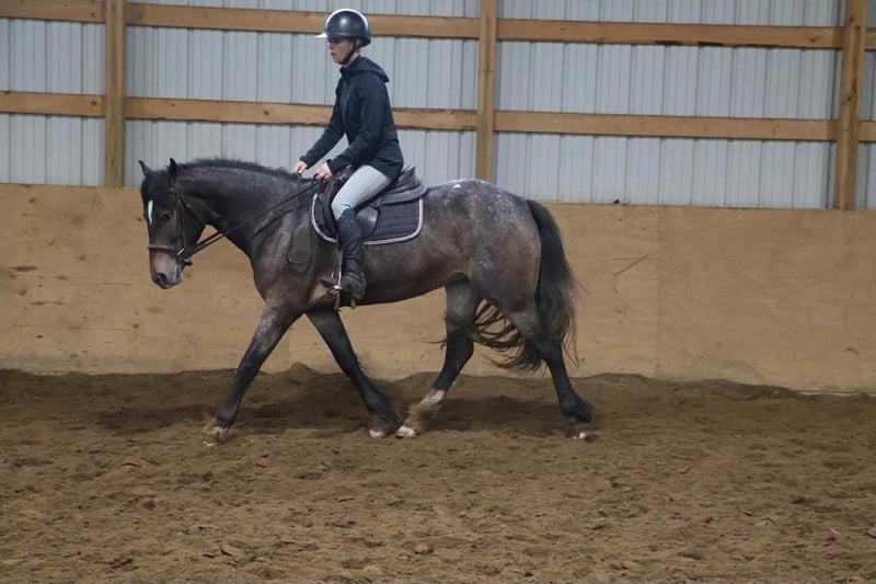 ONLINE AUCTION Place your bids at www.PlatinumEquineAuction.com Starting Bid $3500 Auction ends July 20th 2025 Need a new saddle? Check out White Rock Saddles on our website or Facebook Scarlett is hands down one of the most adorable gypsy vanner Appaloosa crosses you will meet. This little lady stands 14.1hh at 4 years old. She’s got beautiful and unique LP sliver/bay roan with white varnishing covering her. Light feathering covers her legs and she has a beautiful mane and tail. Her conformation is very classic and correct. Scarlett has a petite and pretty face with a kind and expressive eye. Scarlett is full of personality in a good way. She knows all the liberty work and will lay down and sit on command! She’s carried the flag, steeps over tarps, bridges and plays with the giant ball! She can say yes and no and side pass right over to the mounting block! This little lady is always happy to greet you and will stand for hours for grooming. She has had 60 days in harness and has driven across the countryside of Michigan. Under-saddle this girl is a blast!! She walk, trots, and canters with comfort and ease. She comes equipped with effortless transitions both upward and down. She stops on a dime and backs up like a pro. Scarlett moves very well off of seat and leg pressure as well. She has been working in the arena schooling 1st level dressage moves and works with ease and elegance. She’s a smart girl, once you teach her something she gets it’s and comes out the next day aiming to please. We have been having a blast teaching her to jump. Scarlett is jumping small courses in beautiful form and she’s not one to shy from flowers or fill. She holds a nice canter around a course and jumps in great form. She also has very easy flying lead changes. Scarlett has spent many hours out on the trails and she loves an adventure. She will ride out alone or in a group. She’s not phased by cracking brush, thick woods, dirt road traffic, wildlife, steep hills or water. With that being said we think she would be super fun to take out on a hunter pace, or even some lower level eventing. Scarlett is a very special girl. She’s got the movement, mind, and looks to go almost any direction you want to take her! Scarlett lives in Howell, MI. Please call or text Ellesse Schwartz 248-390-6831for more info. ONLINE AUCTION Place your bids at www.PlatinumEquineAuction.com Starting Bid $3500 Auction ends July 20th 2025 Need a new saddle? Check out White Rock Saddles on our website or Facebook