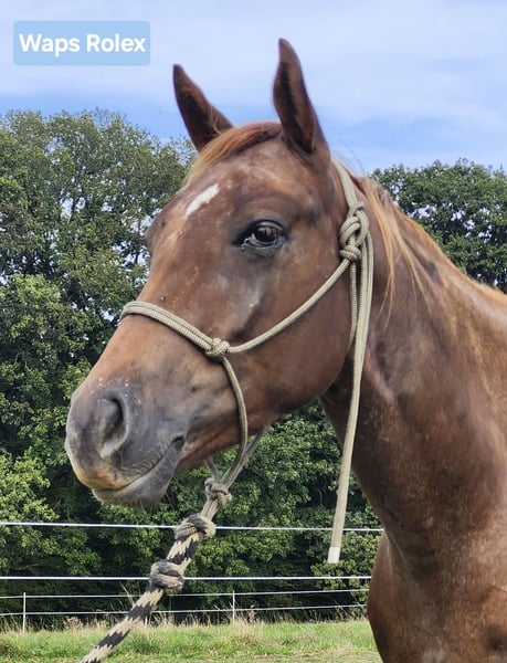 Zum Verkauf steht der bildhübsche Appaloosa-Wallach Waps Rolex, direkt vom Züchter, mit hervorragendem Charakter und viel Potenzial für Sport und Freizeit. Appaloosa Wallach, geb. 03.09.2021, ca. 160 cm, Farbe: liver chestnut with blanket. Er überzeugt durch ein korrektes, harmonisches Gebäude, ein solides Fundament mit starken Knochen und guten Hufen, läuft barhuf und ist ausgewogen bemuskelt. Seine weichen und angenehmen Grundgangarten machen das Reiten besonders komfortabel. Waps Rolex ist sehr menschenbezogen, ruhig und brav im Umgang, dabei verspielt und stets interessiert an dem, was sein Besitzer macht. Er möchte immer gefallen, lernt schnell und bringt ein ausgeglichenes, angenehmes Temperament mit. Er wuchs im Herdenverband auf, ist dort mittelrangig und sozial gut integriert. Verladen ist für ihn kein Problem, Tierarzt und Hufschmied kennt er selbstverständlich. Der Wallach besitzt eine gute Westernausbildung und wird aktuell vom Profi weiter in Richtung Ranch Riding gefördert. Die meiste Zeit seiner Ausbildung verbrachte er im Gelände und kennt das Reiten an unterschiedlichen Orten wie z.B. Strand. Unter dem Sattel zeigt er sich sehr zuverlässig, mit Talent insbesondere für Ranch-Klassen, ist aber ebenso als vielseitiger Freizeitpartner geeignet. Gesund, regelmäßig geimpft und entwurmt, dem Zahnarzt regelmäßig vorgestellt und 5-Panel n/n. Die ApHC-Papiere liegen vor. Ob als zukünftiges Showpferd oder als zuverlässiger Freizeitpartner - mit seinem goldenen Charakter und seiner guten Abstammung ist dieser Youngster ein echtes Versprechen für die Zukunft.