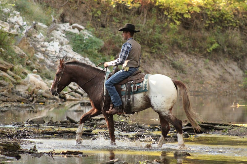 ⚜️𝐓𝐇𝐄 𝐅𝐀𝐋𝐋 𝐇𝐄𝐑𝐈𝐓𝐀𝐆𝐄 𝐂𝐋𝐀𝐒𝐒𝐈𝐂⚜️ Happening now thru MONDAY | NOVEMBER 3rd - Available EXCLUSIVELY on HorseBid's website! For more details and to register visit: www.Horsebid.com CONSIGNOR CONTACT: JM Lazy S Versatility and Family Horses 208-566-3050 LOCATION: Baxter Springs, KS BREED: Appaloosa REGISTERED: Yes REGISTERED NAME: JMS Leavin Lonesome Dove COLOR: Chestnut Blanket HEIGHT: 15.2 AGE: 8 GENDER: Gelding JMS Leavin Lonesome Dove, better known as Gus, is the kind of horse that makes you feel like a real cowboy. Not to mention, he’s a movie star himself, featured in the new western film The Dead Don’t Hurt. Gus is an 8-year-old ApHC colored registered gelding standing a perfect 15.2 hands. He’s got a big, beautiful hip, a kind eye, and keen ears that make him handsome even if he were a plain sorrel. He’s as gentle and broke as they come, with more real-life, ranch, and trail experience than most horses three times his age. Gus has been the go-to mount for novice guests, tricky ranch chores, and relaxing trail rides alike. He’s been used to doctor cattle, gather pastures, and brand calves, and he worked weekly at the local sale barn penning back cattle and calves. He’s even been known to drag the occasional resistant bull or wild cow back to their pen. As handy as Gus is in his working clothes, he’s just as impressive out on the town. He rides bareback and bridleless, lopes slow and collected circles on either lead, and has shown successfully in ranch pleasure, trail, and western riding. He’s also dabbled in cross-country style jumping and would make a super fun foxhunting or versatility mount. We had the pleasure of selling Gus at Fall Roundup Horse Sale last year. He spent the year giving lessons and being adored by some little girls. When a move across the country forced his sale, we were thrilled to welcome him back. Last year, he was the first place winner out of 65 head in the trail course — which he completed completely bridleless. He also lays down and bows, adding a little extra flash to an already impressive résumé. Gus would be exceptional candidate for working equitation, competitive trail or extreme cowboy competitions. With his quiet demeanor and go with the flow attitude you won't find much that phases him, not to mention he's extremely easy to ride and is very user friendly. Whether you want to rope calves, doctor cattle, hit the trails, or ride English, Gus can do it all. He is absolutely safe, absolutely gentle, and one of the most versatile, enjoyable geldings you’ll ever swing a leg over. Gus truly is the total package — beautiful, broke, kind, and ready to make someone’s next chapter a great one. He's up to date on dental, chiropractic, worming, farrier, and coggins. Give us a call or text Molly (208)566-3050 or John (208)310-5686 for more information about Gus.