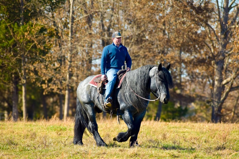 ⚜️ 𝓽𝓱𝓮 𝐇𝐨𝐫𝐬𝐞𝐦𝐚𝐧'𝐬 𝓢𝓱𝓸𝔀𝓬𝓪𝓼𝓮⚜️ Happening now thru MONDAY | DECEMBER 1st - Available EXCLUSIVELY on HorseBid's website! For more details and to register visit: www.Horsebid.com CONSIGNOR CONTACT: Lucky 13 Equine 765-698-4655 LOCATION: Mount Vernon, KY BREED: Barbant Cross REGISTERED: Yes REGISTERED NAME: Cache Creek Sue's Prince COLOR: Blue Roan HEIGHT: 16.1 AGE: 4 GENDER: Stallion Cache Creek Sue’s Prince is a double registered 4 year old blue roan Brabant stallion. He is DOUBLE registered! He is registered with the American Brabant Association and also registered with the European Brabant Registry of America. He was born on 5-17-21. He stands 16.1 hands tall and has a super thick, stout build. He has a big foot and big bone, a super long mane and thick tail and is absolutely gorgeous. As a stallion, he is respectful and well mannered. He is quiet in the barn and behaves very nicely. Prince has been used to hand breed as well as pasture breed. He has several very nice foals on the ground. All of his colts that he has had so far are either blue roans or bay roans. Prince is a well mannered stallion and has easily been ridden with a group of other horses out on the trail or in the pasture many times. There are endless opportunities when owning Prince when it comes to the breeding aspects. He would be a magnificent sire to raise crossbreds. His size, color, ride and demeanor are everything you could ever want in a horse! Along with the amazing opportunity in having him standing at stud, he is also a great riding horse. He’s been used to check cattle and fences and is no stranger to a day of work. He trail rides great as well. He navigates all sorts of terrain. He will ride out alone or with others, and is up for most any challenge. He also rides around well at a walk, trot and lope, taking his correct leads, neck reins, has a nice back on him and he is easy to handle under saddle. At his age he could easily be gelded and made into a wonderful gelding if you had that desire. His potential is unlimited. He has also been started under harness and has took to it very nicely. Feel free to reach out with any more questions. Shipping can be arranged anywhere in the US.