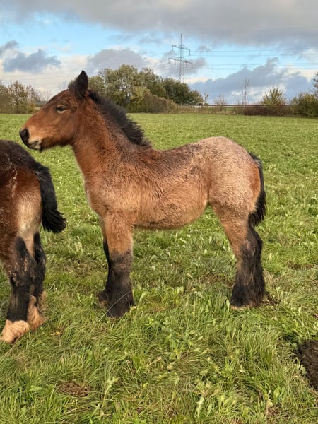 For sale is a Belgian Ardennes mare born in May 2025, with excellent full lineage. She already has a very strong and beautiful build and moves nicely. She has been raised appropriately in a herd with other foals and has now been weaned. She will definitely make a wonderful mare for breeding or riding. She has been dewormed recently and is in perfect health. No known illnesses or allergies. An ultrasound examination (AKU) can be arranged upon request. Please feel free to call or send a message to 0157 36803742. All information is provided without guarantee; prices are subject to change. Transport can be arranged, and online purchasing is possible.