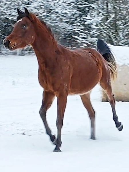 Typvoller edler Asil Araber Hengst mit besten GGA für Zucht, Sport und Freizeit - Braun ohne Abzeichen, 4 schwarze Hufe - Widerristhöhe (derzeit ca.) 148 cm - geb. 01.05.2023 - Mutter- Linie: KR (Kohailan Rodan) - allerbeste Abstammung AUTHENTIC IBN NAWAAL prämiert, MAYSOUN Elitehengst, AK NAWAAL Elitestute, MULAYH IBN MAAREESA, MESSAOUD Elitehengst, ANSATA AMIR ZAMAN ANSATA HALIM SHAH - super brav und umgänglich - ein Pferd, das auf die Hand geht - herausragendes Gangwerk (Deutlich über die AUTHENTIC IBN NAWAAL- Linie geprägt) - schmiede- und Verladen fromm Verkaufspreis: VHB 8.600,- Euro