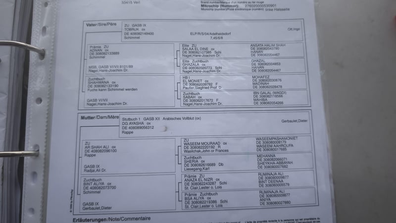 Asile Vollblutaraber Zuchtstute (geb. 2014) Zum Verkauf steht eine wunderschöne Asile Vollblutaraber Zuchtstute, geboren 2014 (Abstammung siehe Bild zwei). Sie hat bei uns bereits zwei gesunde Fohlen zur Welt gebracht und überzeugt durch ihren super Umgang mit den Fohlen. Die Stute ist eine zuverlässige und fürsorgliche Mutter. Sie ist für Ende Sommer 2026 von einem Asilen Vollblutaraber Hengst belegt. Volles Papier gibt es vom ZSAA, Bilder vom Hengst und die Abstammung sind die letzten 3 Bilder in der Anzeige. Die Stute wird weit unter Wert abgegeben, da sie an Sommerekzem hat. Dieses ist jedoch gut händelbar – besonders wichtig: Keines ihrer bisherigen Fohlen hat das Ekzem übernommen. Diese Stute bietet eine tolle Gelegenheit für Züchter. Bei Interesse freuen wir uns über Ihre Nachricht!