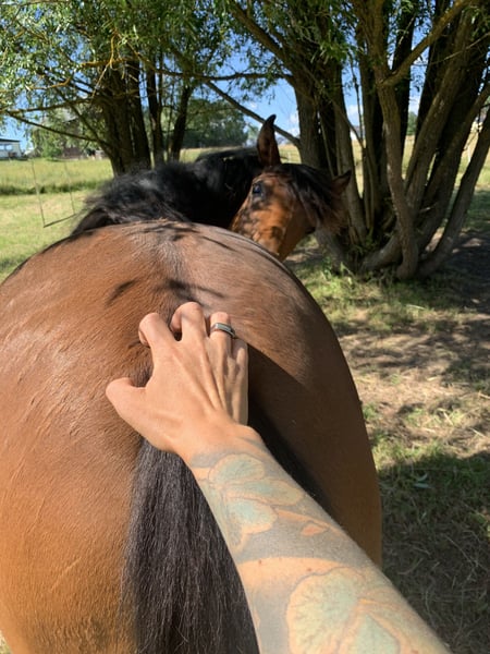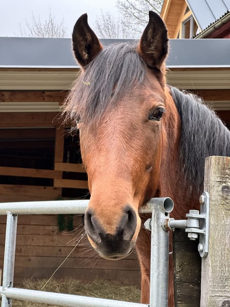 Suna ist die schmeichelndste Stute die ich kenne. Mit ihrem Charme und ihren lieben Augen zieht sich viele in ihren Bann. Suna ist 3 Jahre alt und bei uns geschlüpft. Es war ein atemberaubendes Erlebnis und ich schreibe diese Anzeige auch nicht gern. Wir lieben sie hier wirklich sehr aber wir können ihr zeitlich nicht gerecht werden. Sie braucht Kontakt zu jüngeren Pferden aber vor allem braucht sie Arbeit/ Beschäftigung im Sinne von regelmäßiger Bodenarbeit. Sie kennt schon etwas Horseman. Das Zirkeln im Roundpen, Weichen und Planenspiele mag sie. Hängertraining kennt sie auch etwas aber noch ungenügend. Wir kommen zu selten dazu. Suna ist noch roh, hätte jedoch einen Platz ab März zum Beritt bei Nina Gassner im savvy center. Was Suna noch braucht ist abgewogenes Futter, dies sollte in engmaschigen Netzen, in sogenannten Slowfeeder Netzen gereicht werden. Sie ist eben zur Hälfte ein PRE und kommt mit unseren fetten Wiesen und dem recht süß schmeckenden Heu gesundheitlich nicht zurecht. Wir hatten aus Nichtwissen aus diesem Grund extreme Probleme mit ihrer Gesundheit was wir jedoch durch Konsequenz gerade biegen konnten, eine Fressbremse ist aus diesem Grund auf der Wiese unerlässlich. Weiteres gern falls echtes Interesse besteht.